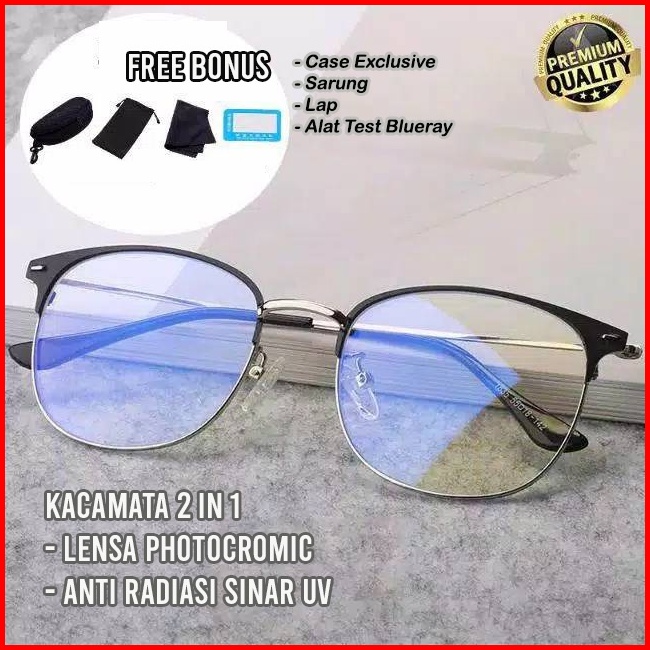 Kacamata Anti Radiasi Sinar Uv Hp Komputer Photocromic Pria Wanita Free Case