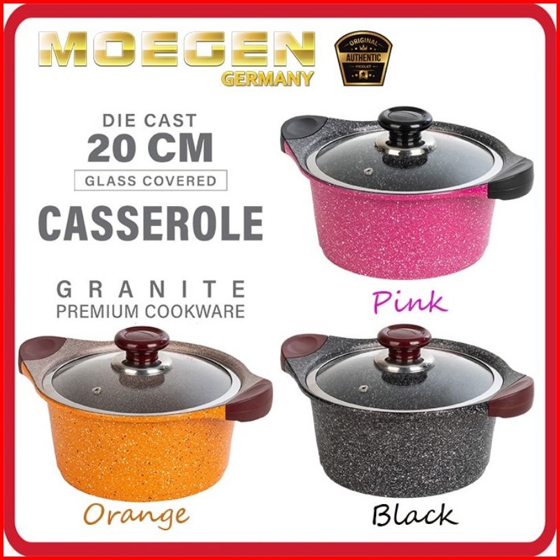Panci Moegen Casserole 20cm Tutup Kaca Anti Lengket