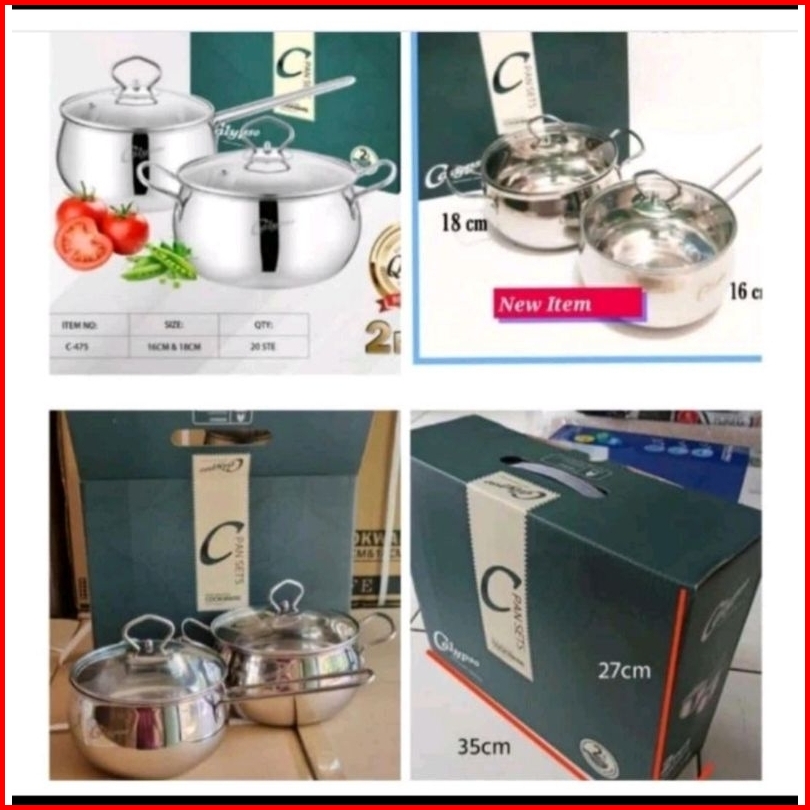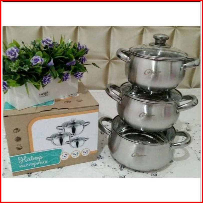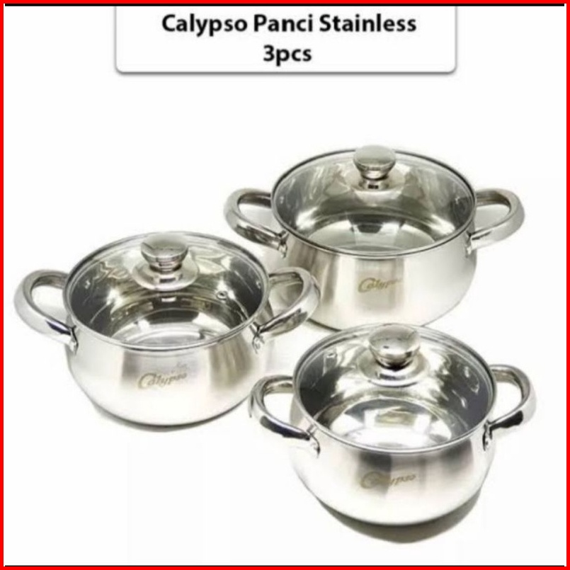 Panci Soup Calypso Set Berkualitas Isi 3pcs Tutup Kaca Tebal