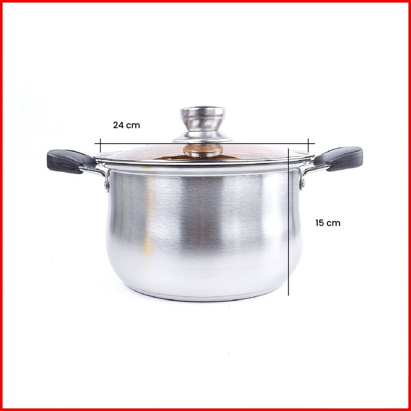 Littlepolkadotpanci Milk Pot Tutup Kaca Tebal Stainless Steel Kitchen Ware - Panci Susu Stainless Steel Panci Milk Pot T