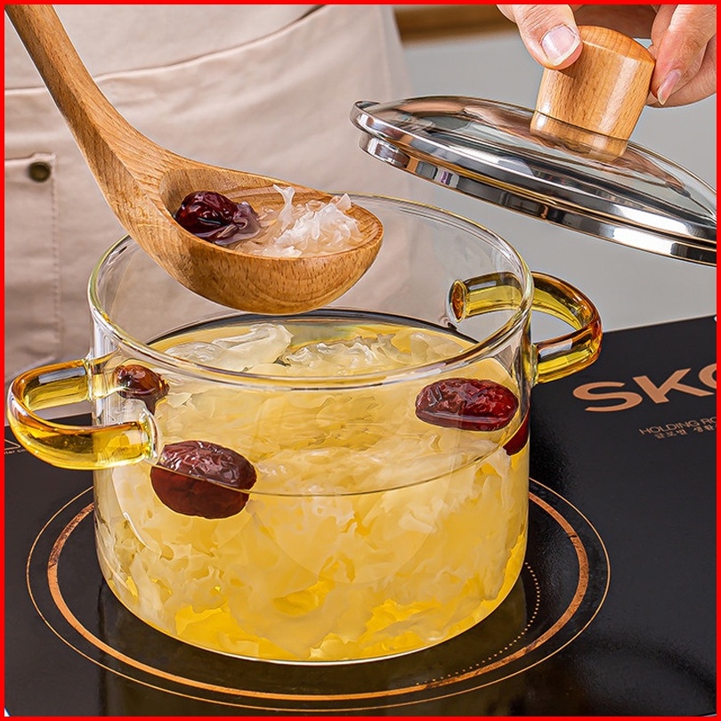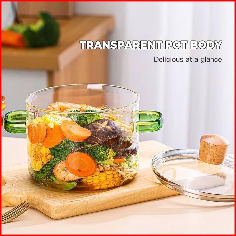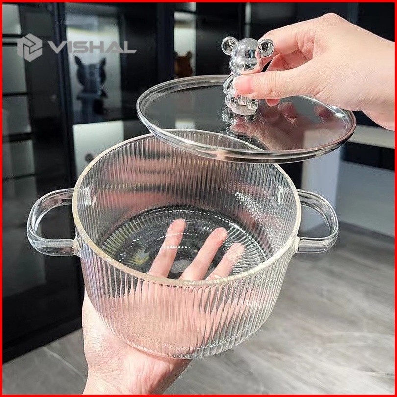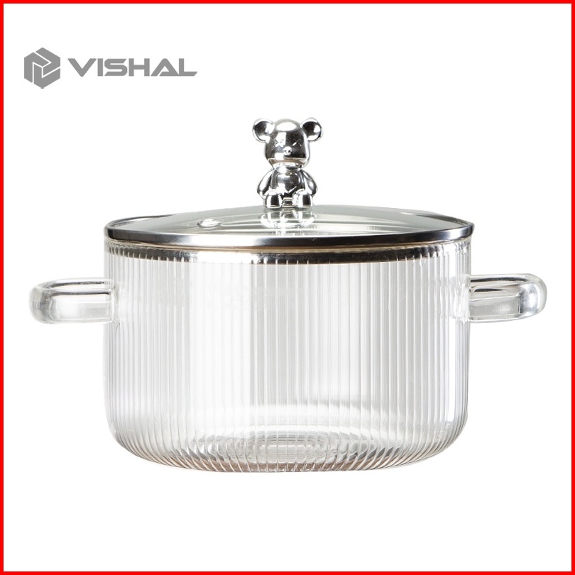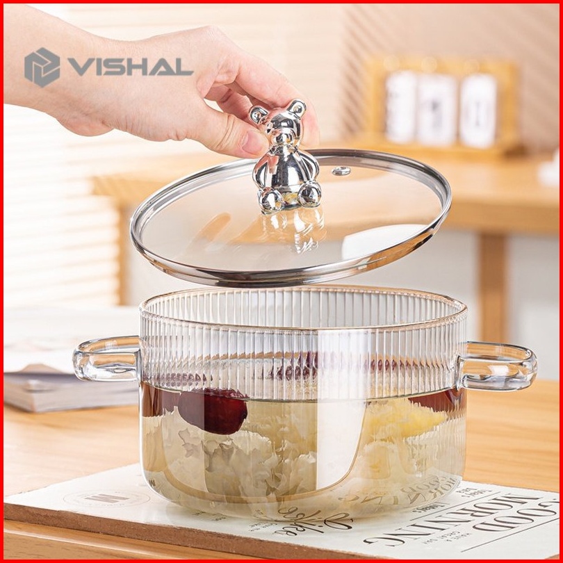 Vishal Pot Panci Masak Stewing Soup Pot Borosilicate Glass Tutup Beruang Panci Kaca Transparant Anti Api Anti Panas Boro
