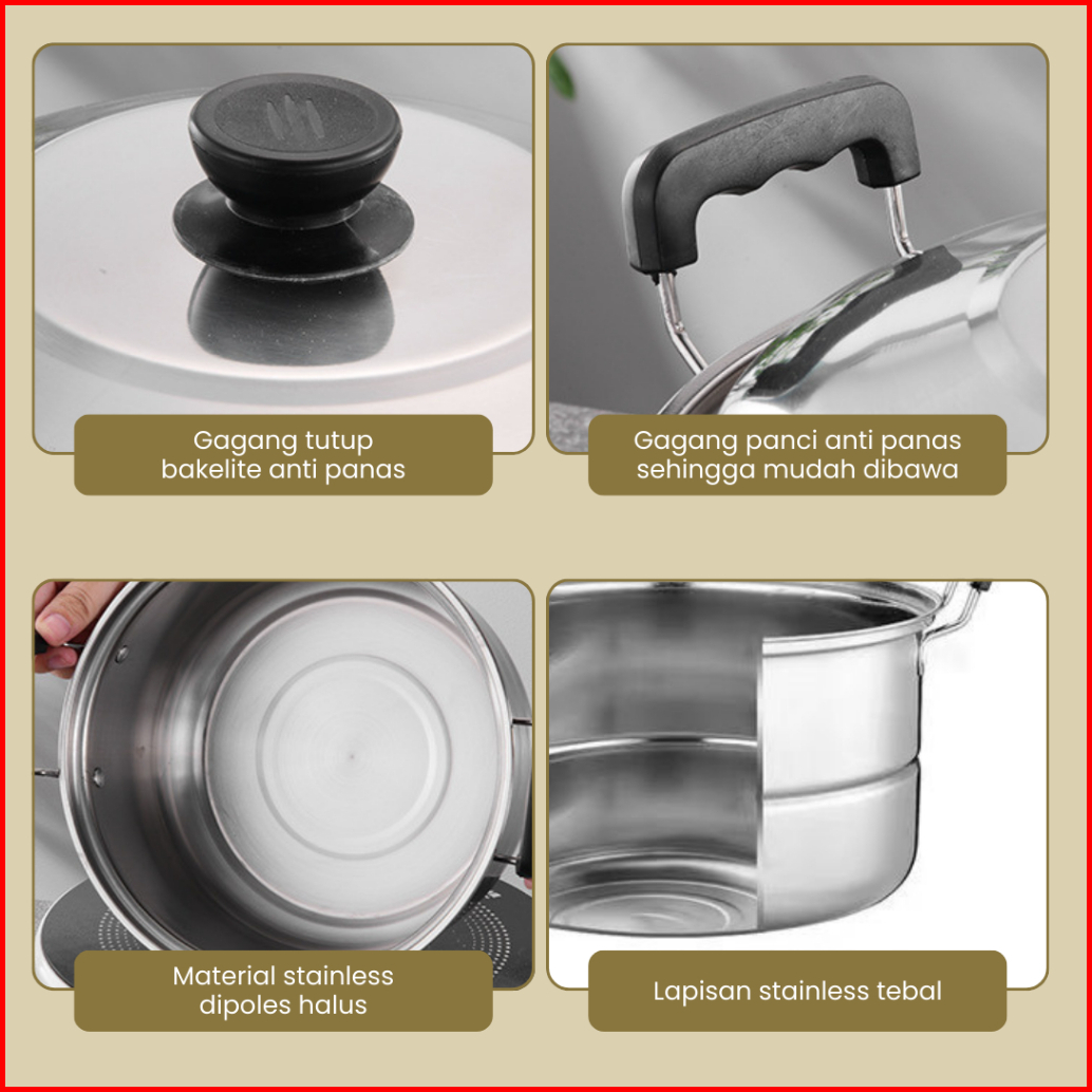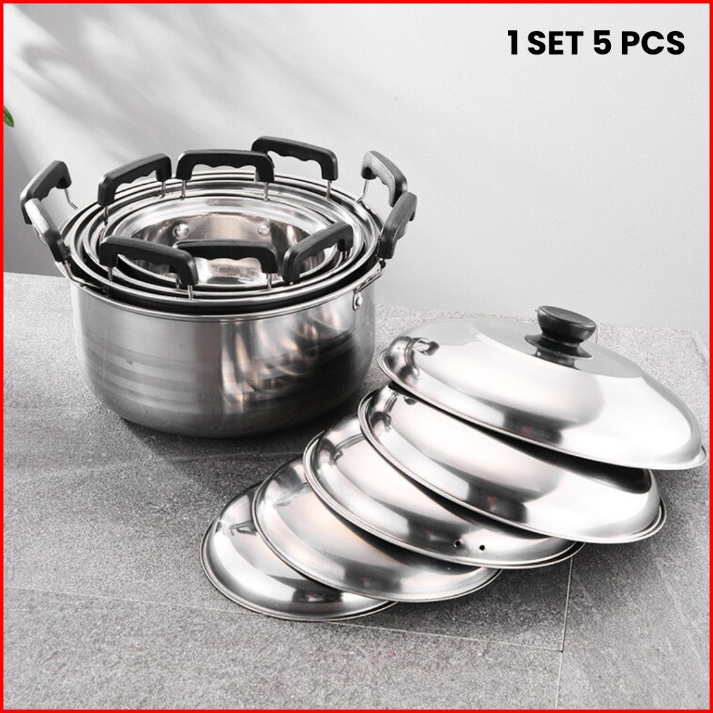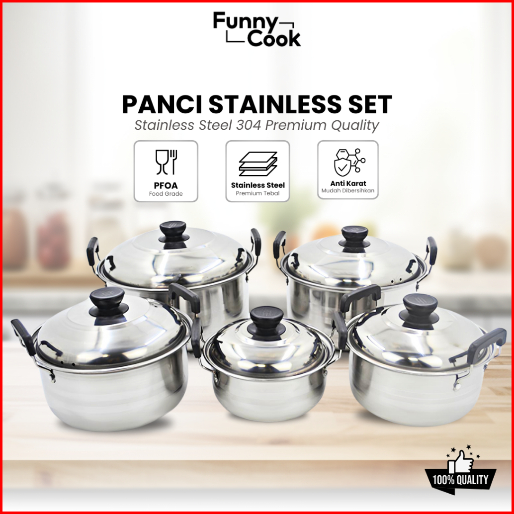 Funnycook Set Panci Tutup Stainless Set 5in1 American High Pot Soup Pot Premium Quality