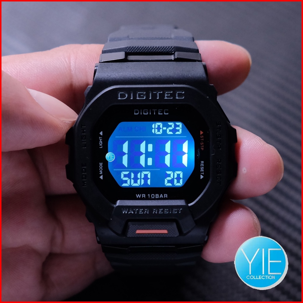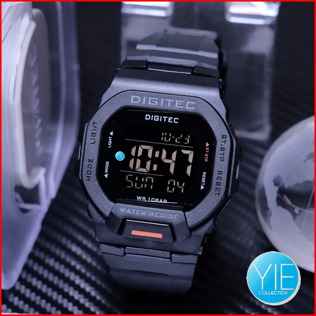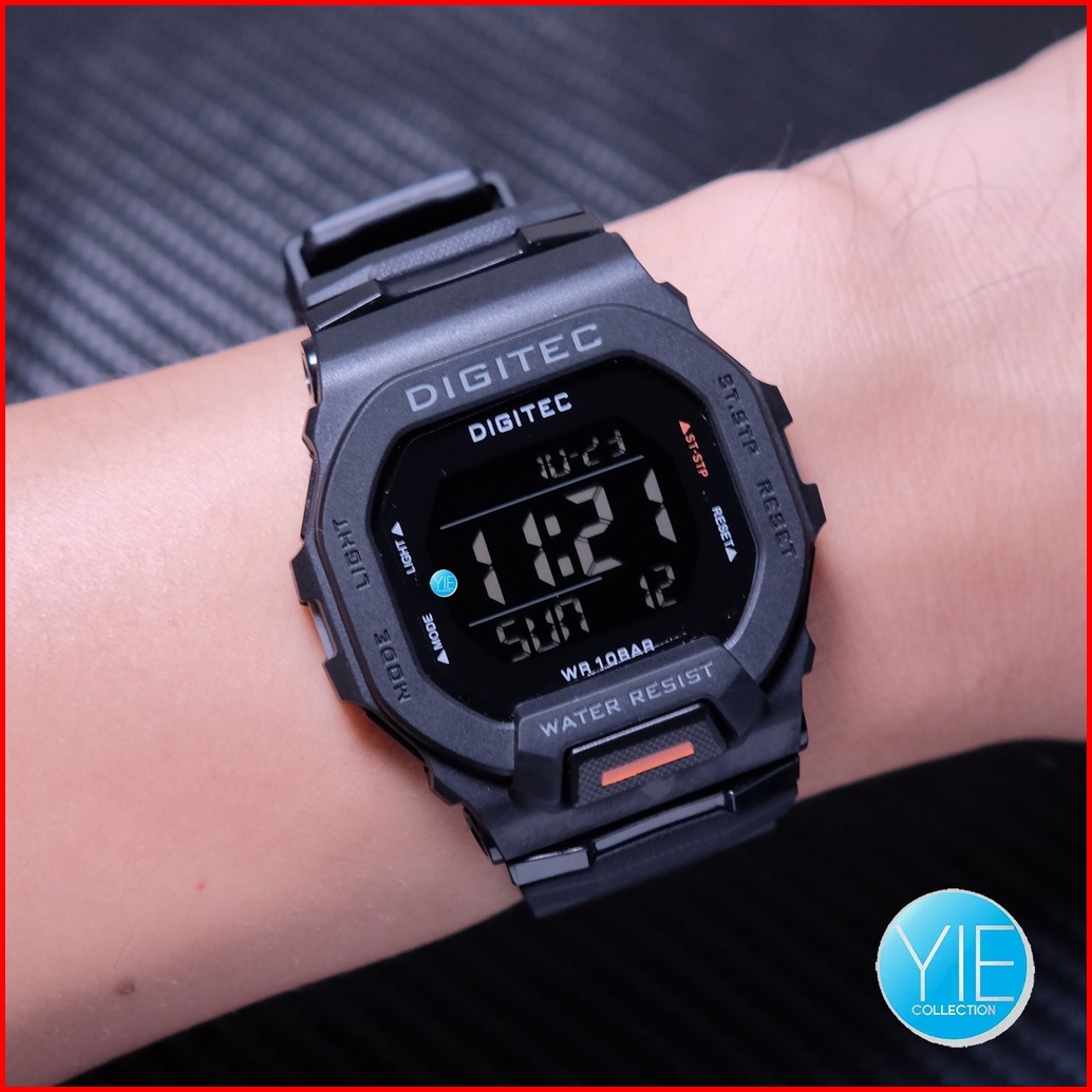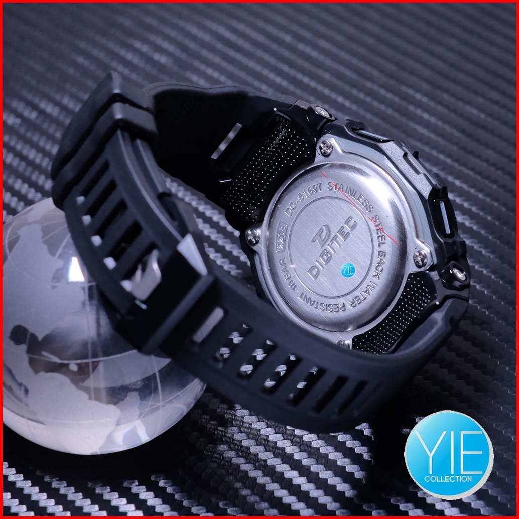 Jam Tangan Pria Original Anti Air Digital Digitec Dg 5169 Full Hitam Tali Karet