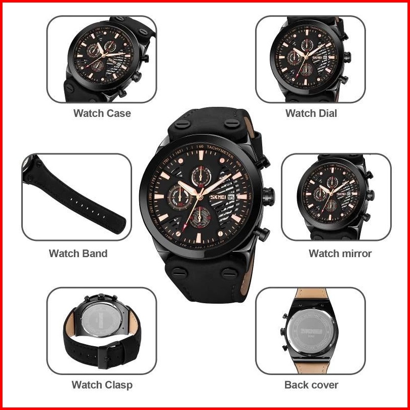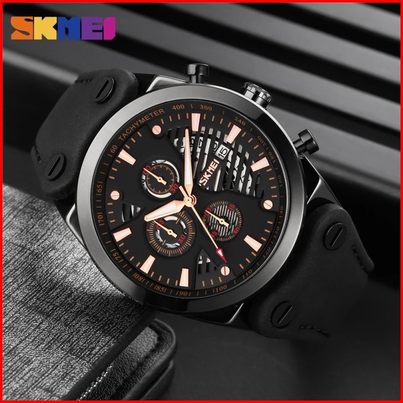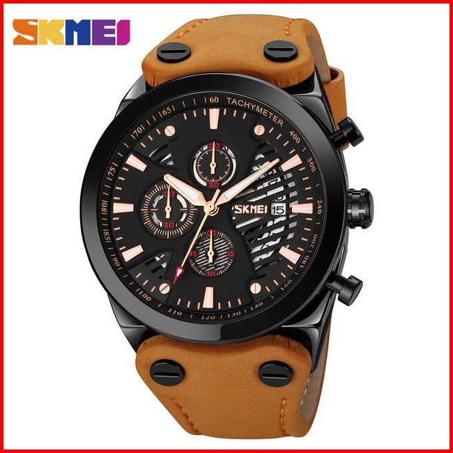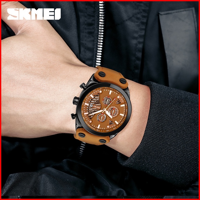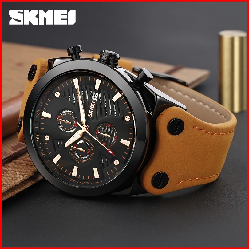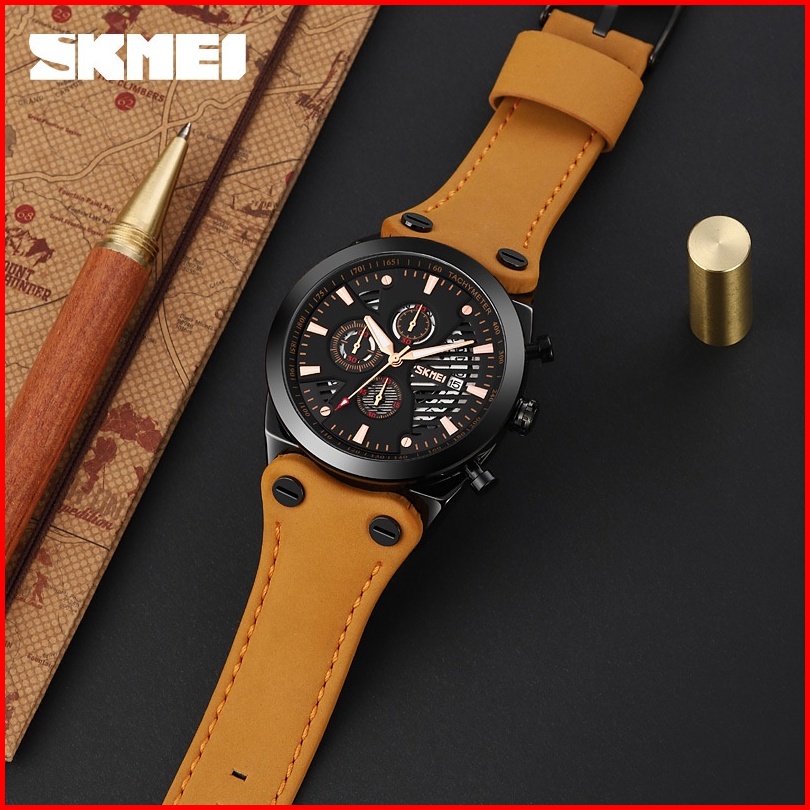 Skmei 9282 Jam Tangan Pria Analog Chronograph Tali Kulit Mgos