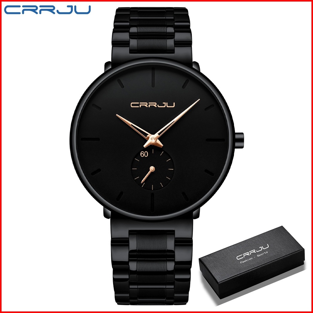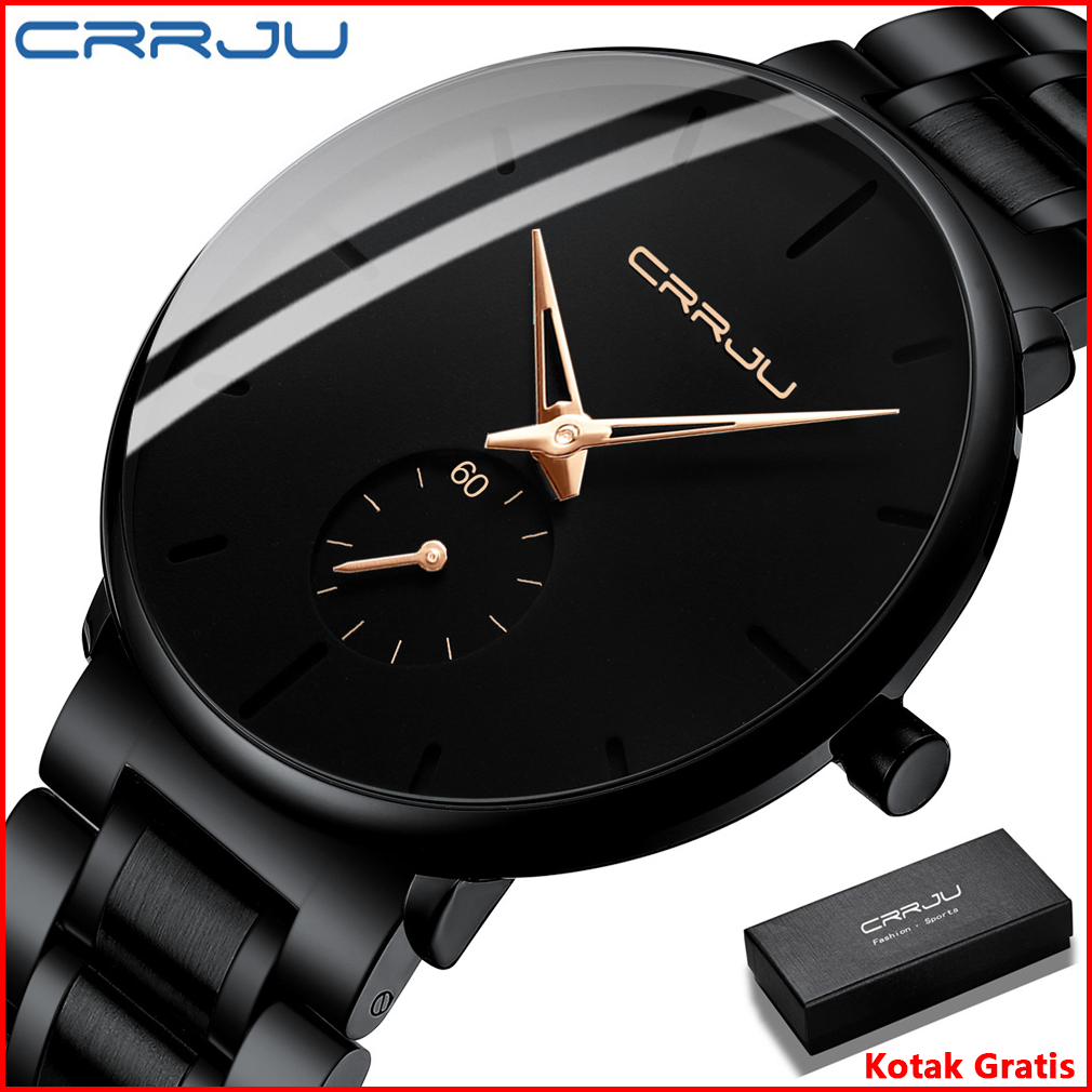 Crrju Jam Tangan Pria Origina Anti Air Top Luxury Bisnis Quartz Stainless Steel Men Watch Jam Tangan Cowo Free Box
