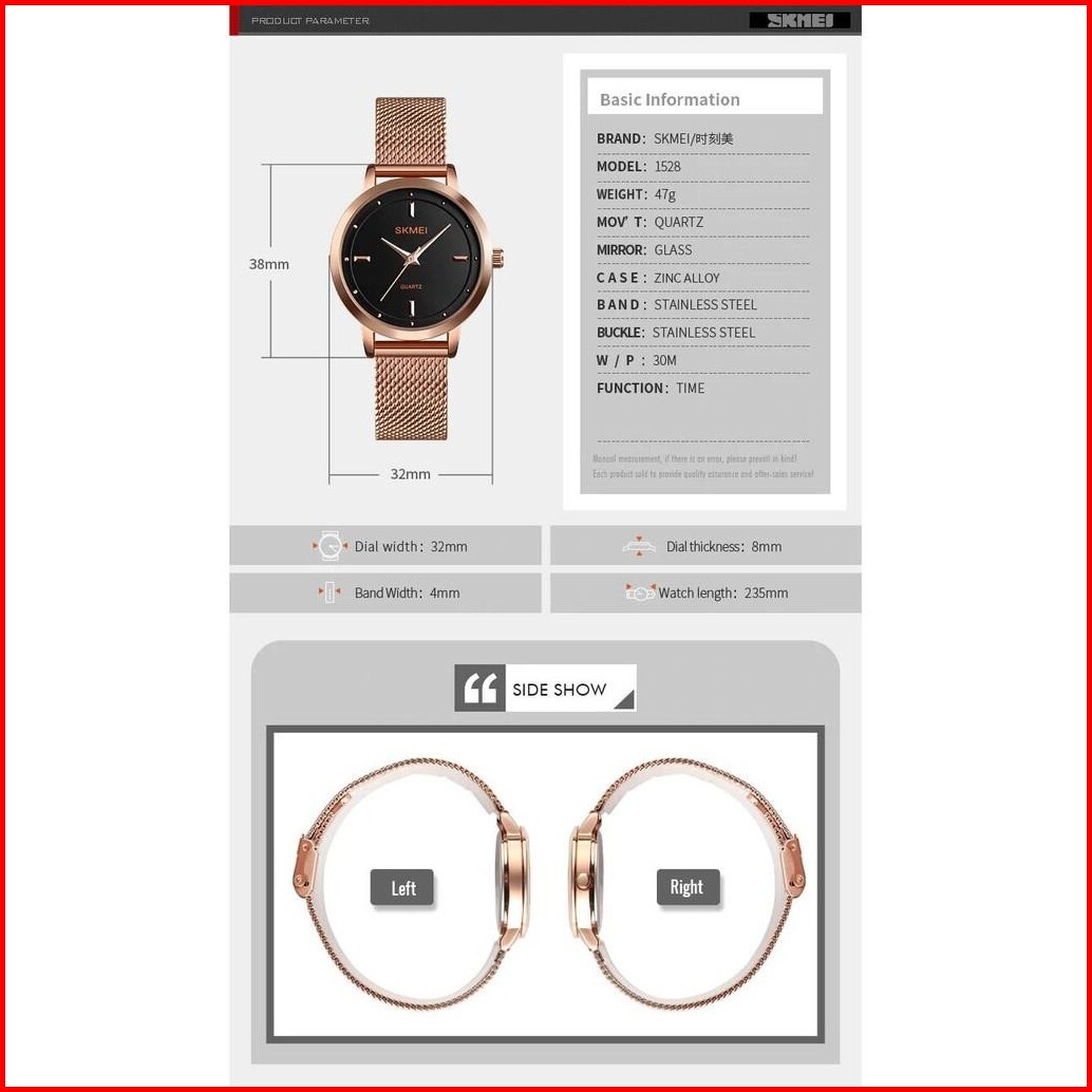 Jam Tangan Wanita Skmei 1528 Analog Tali Pasir Jam Tangan Analog Original Skmei