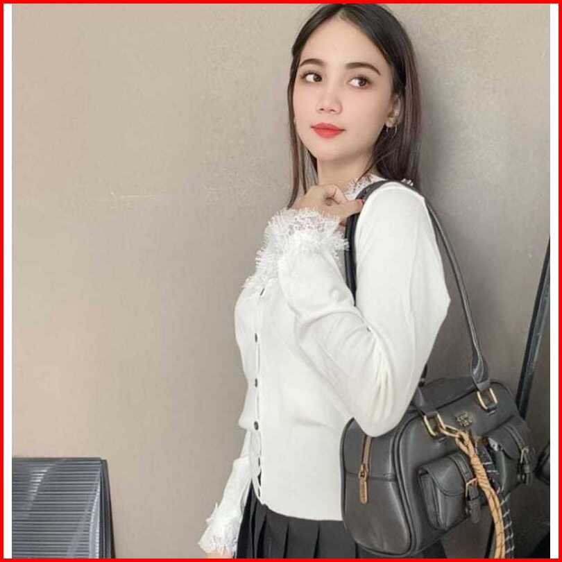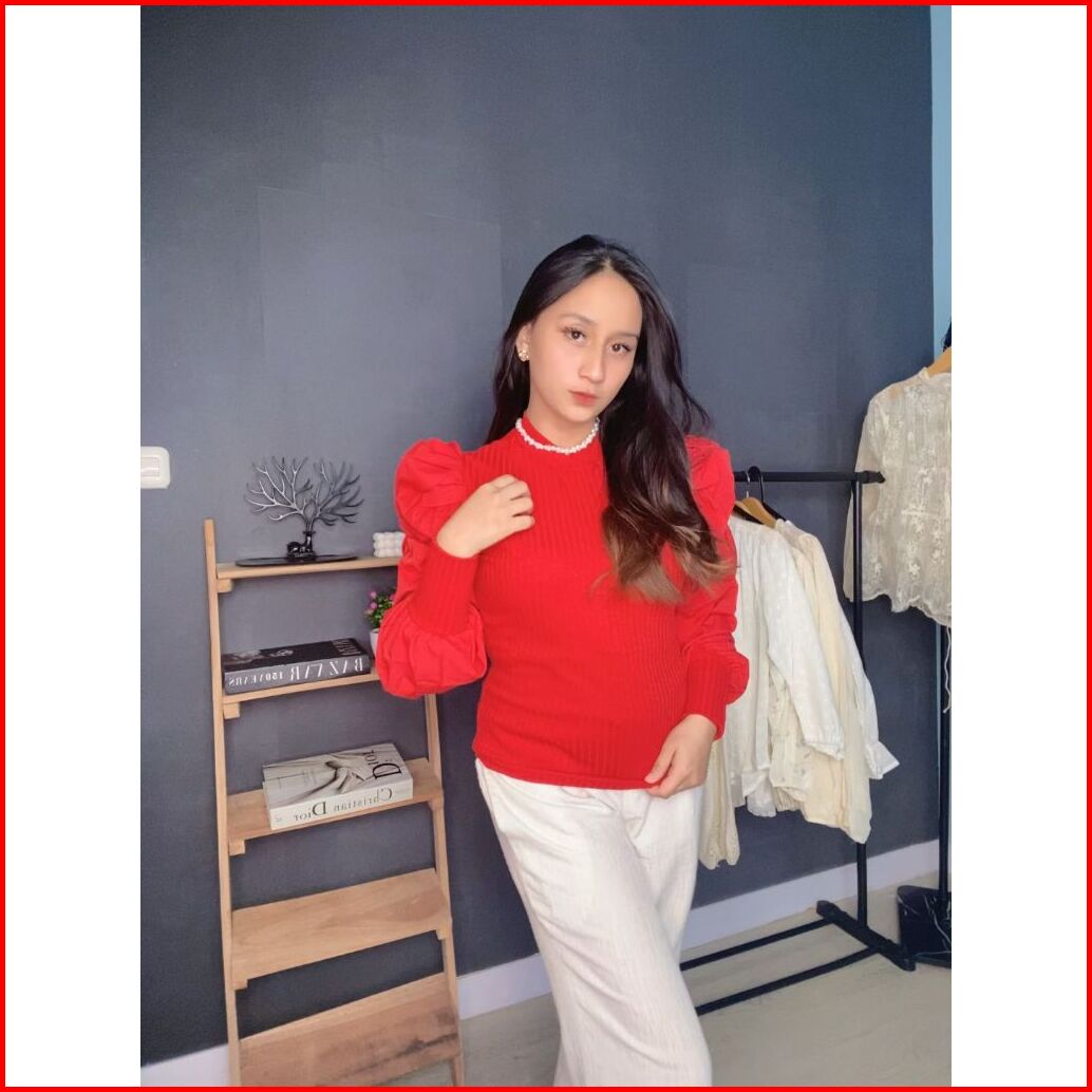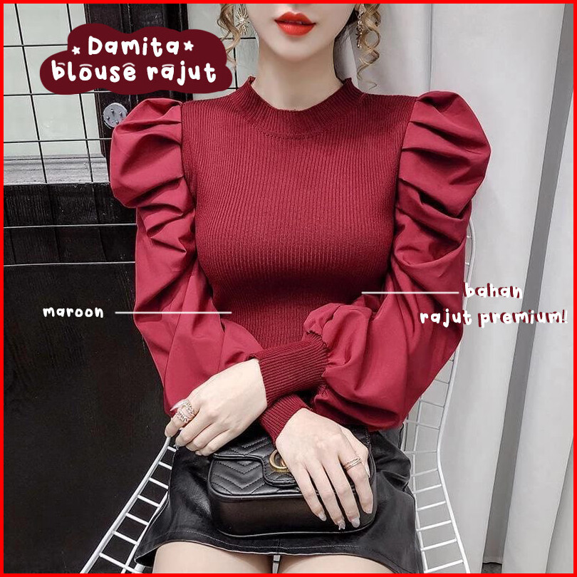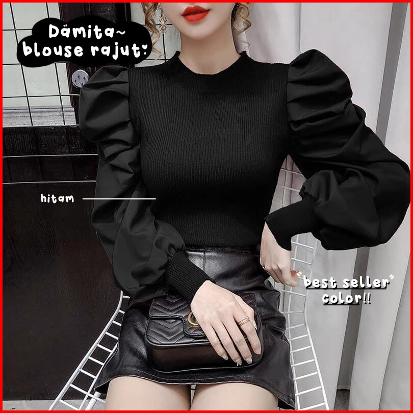Nj Damita Blouse Rajut Wanita Baju Ramadhan Muslim Hijab Ootd Lebaran Ramadan Atasan Remaja Lengan Balon Panjang Kantor