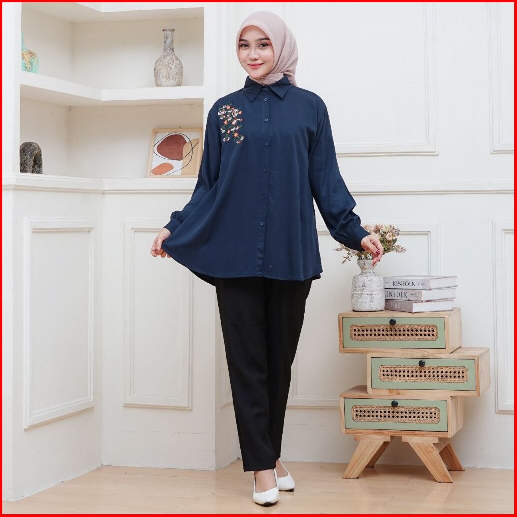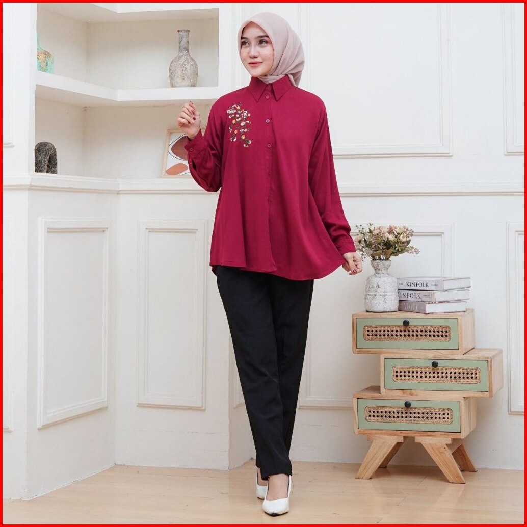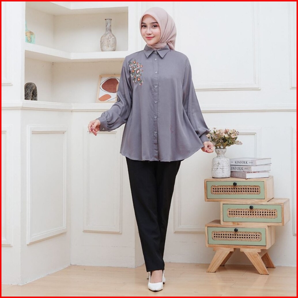 Atasan Wanita Jumbo Basic Rayon Twill Polos Premium Variasi Bordil Bunga Ukuran L Xl Xxl Xxxl L4