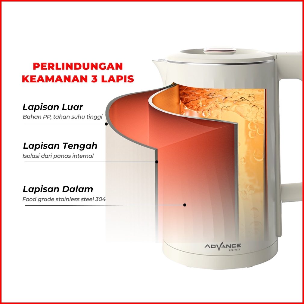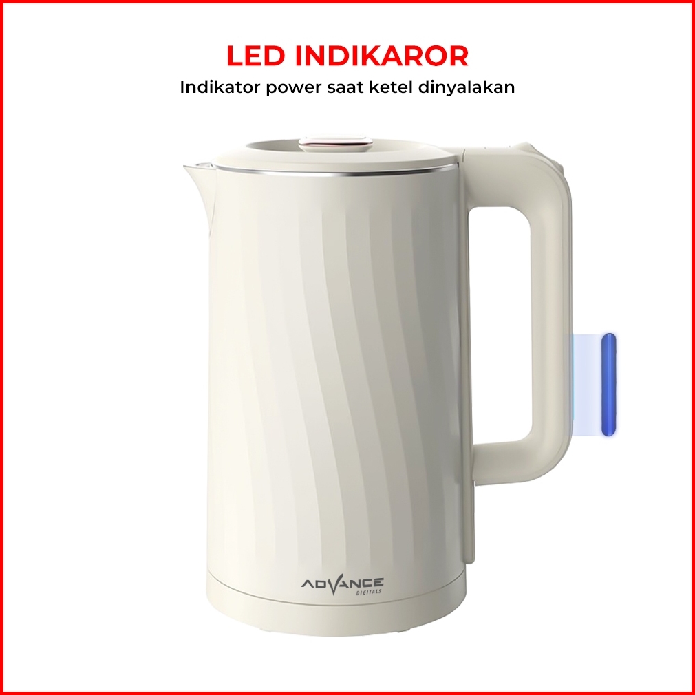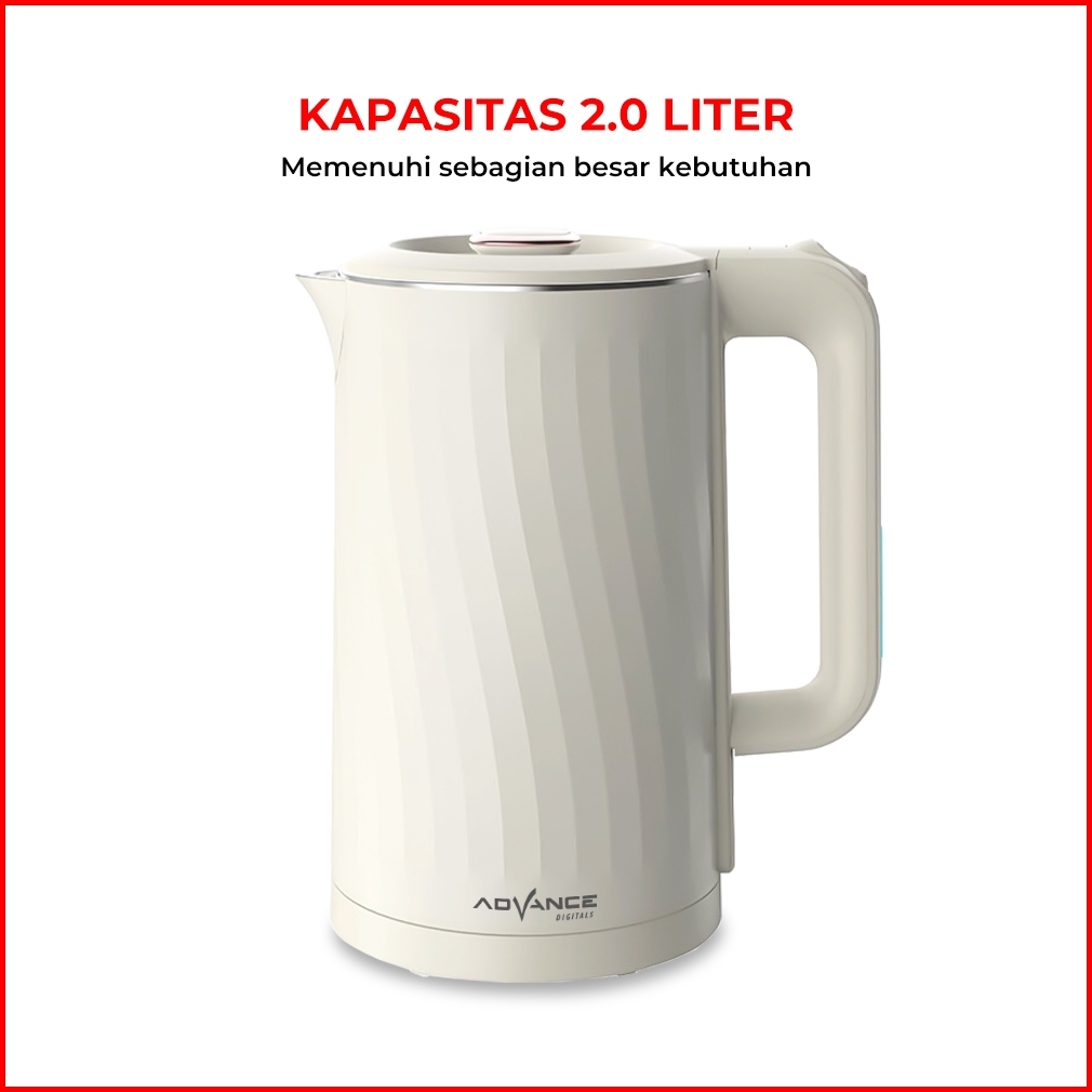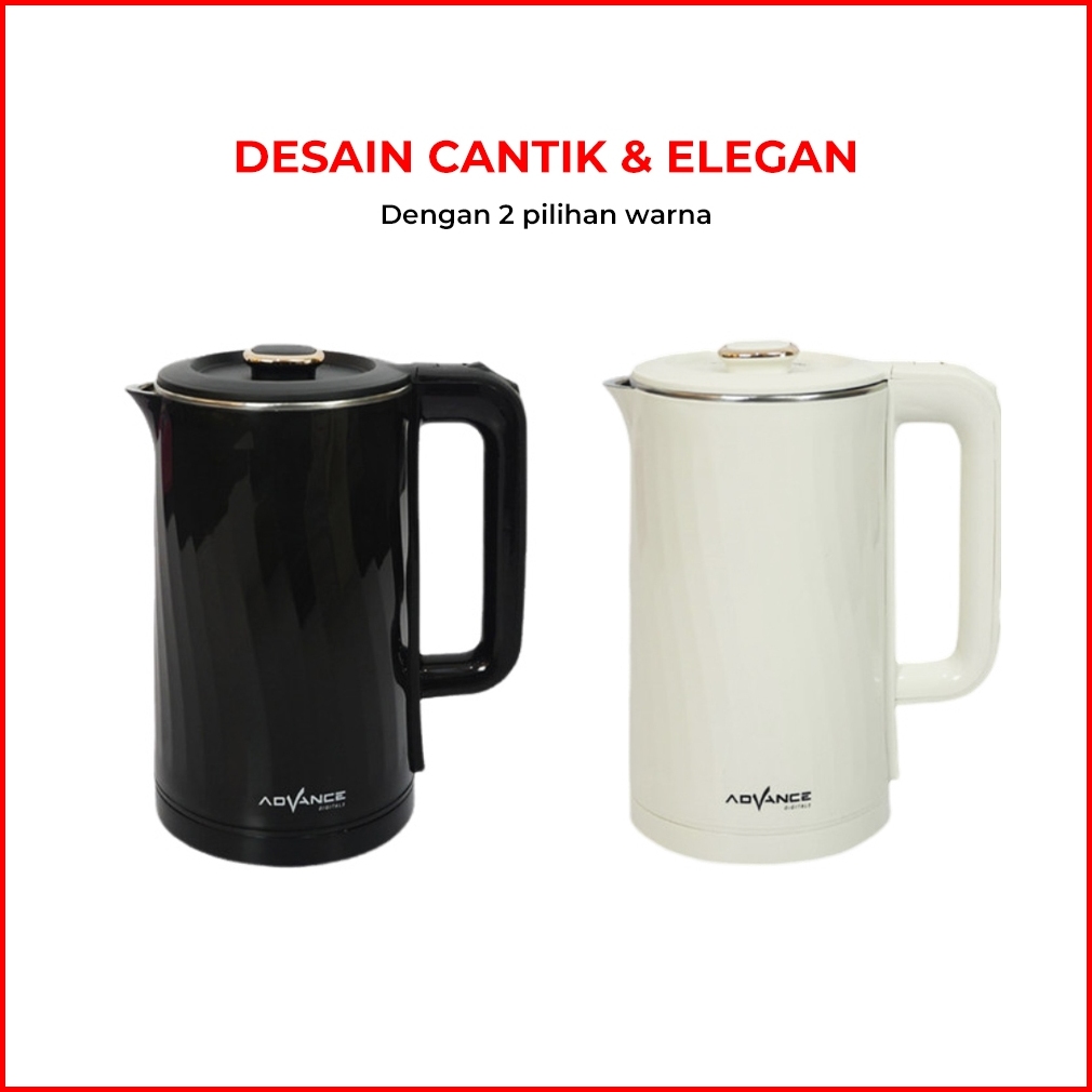 Advance Teko Listrik Kapasitas 2 Liter Stainless Steel Daya 500 Watt Electrik Kettel Ak-187