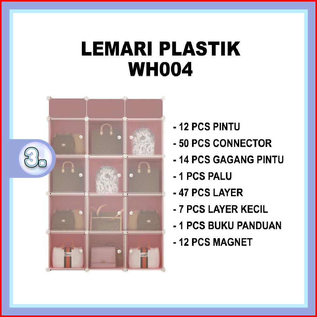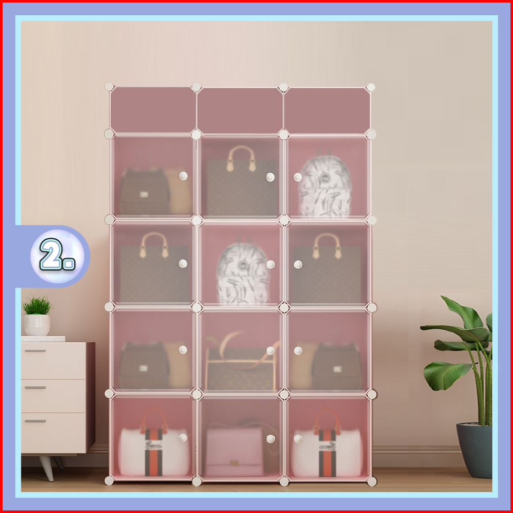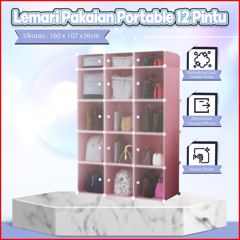 Sweethome Lemari Pakaian Portable Lemari 12 Pintu 3 Rak Lemari Plastik Serbaguna Lemari Multifungsi