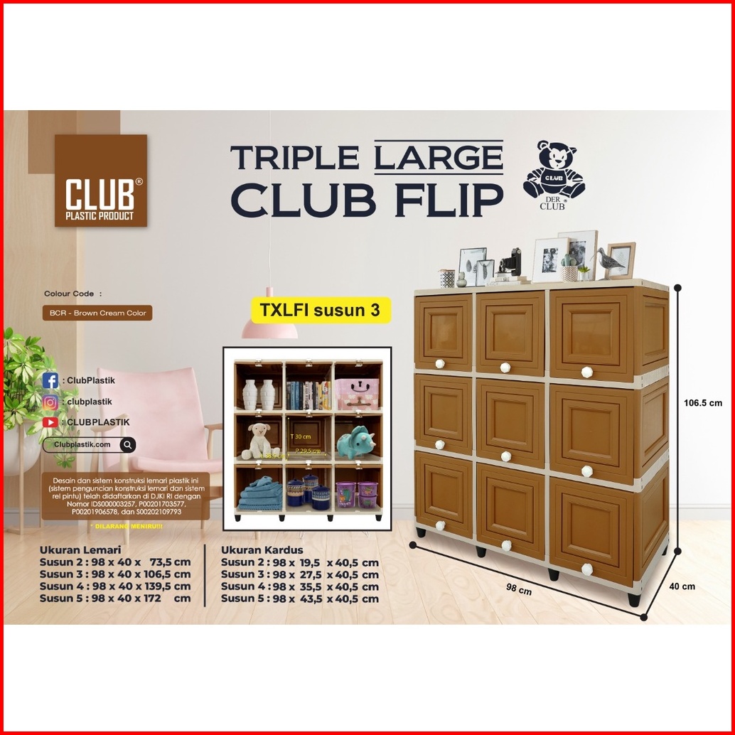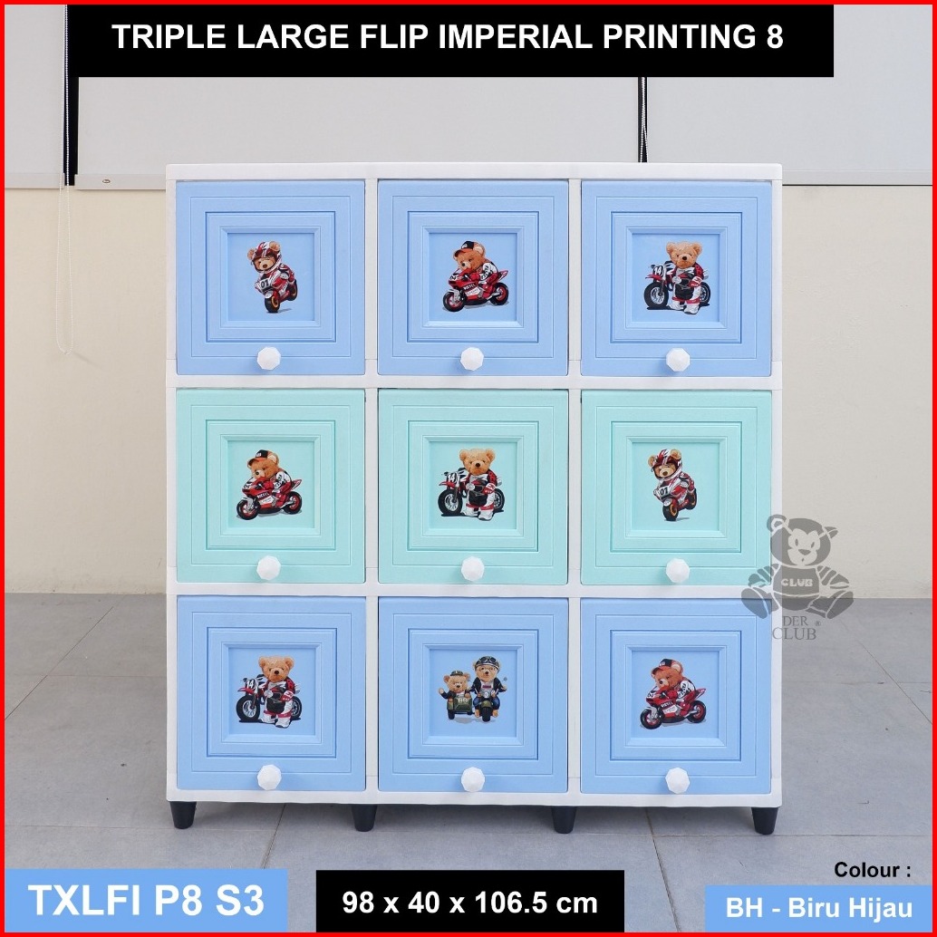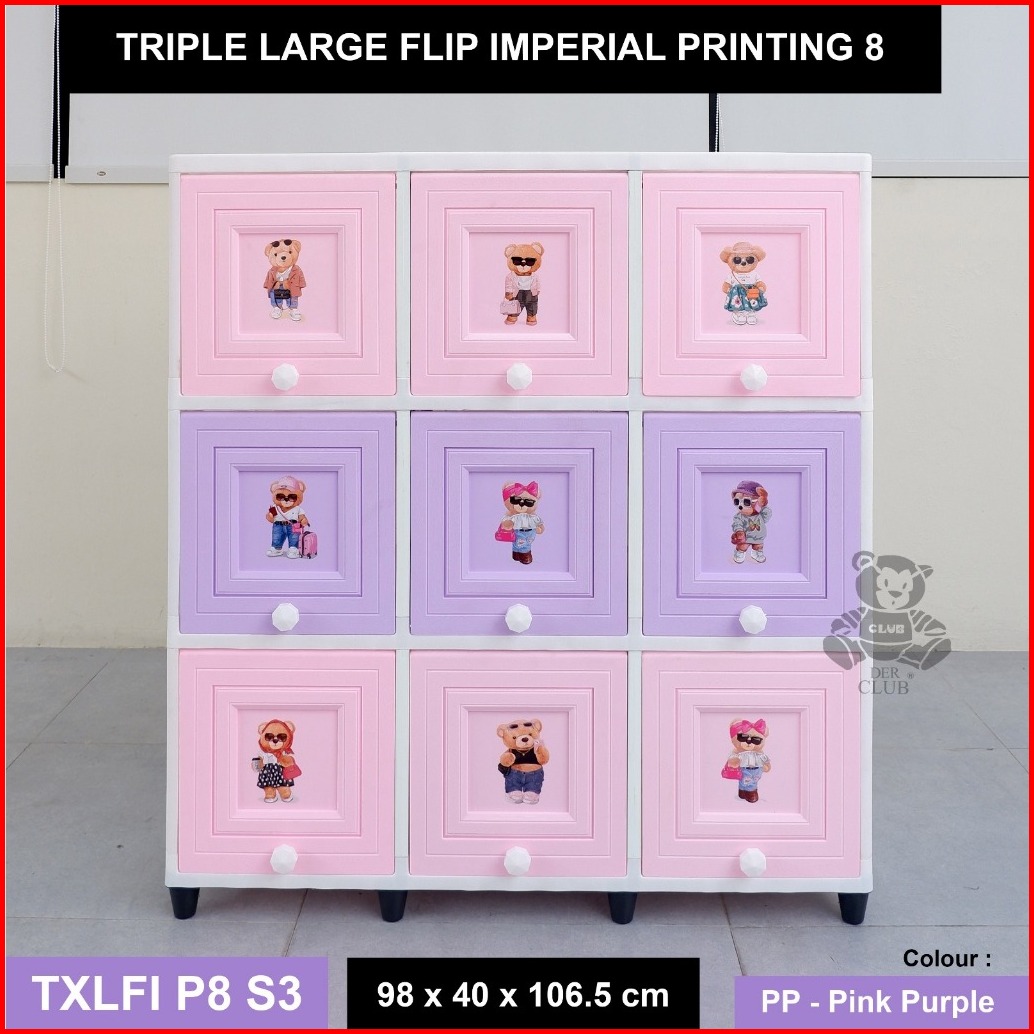 Lemari Plastik Flip Club Pintu Sliding 9 Pintu Lemari Club Triple 3 Susun Extra Large
