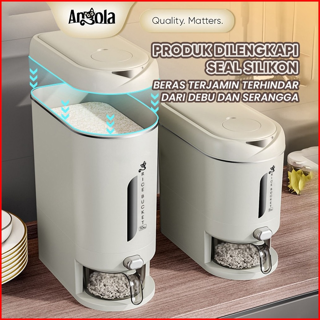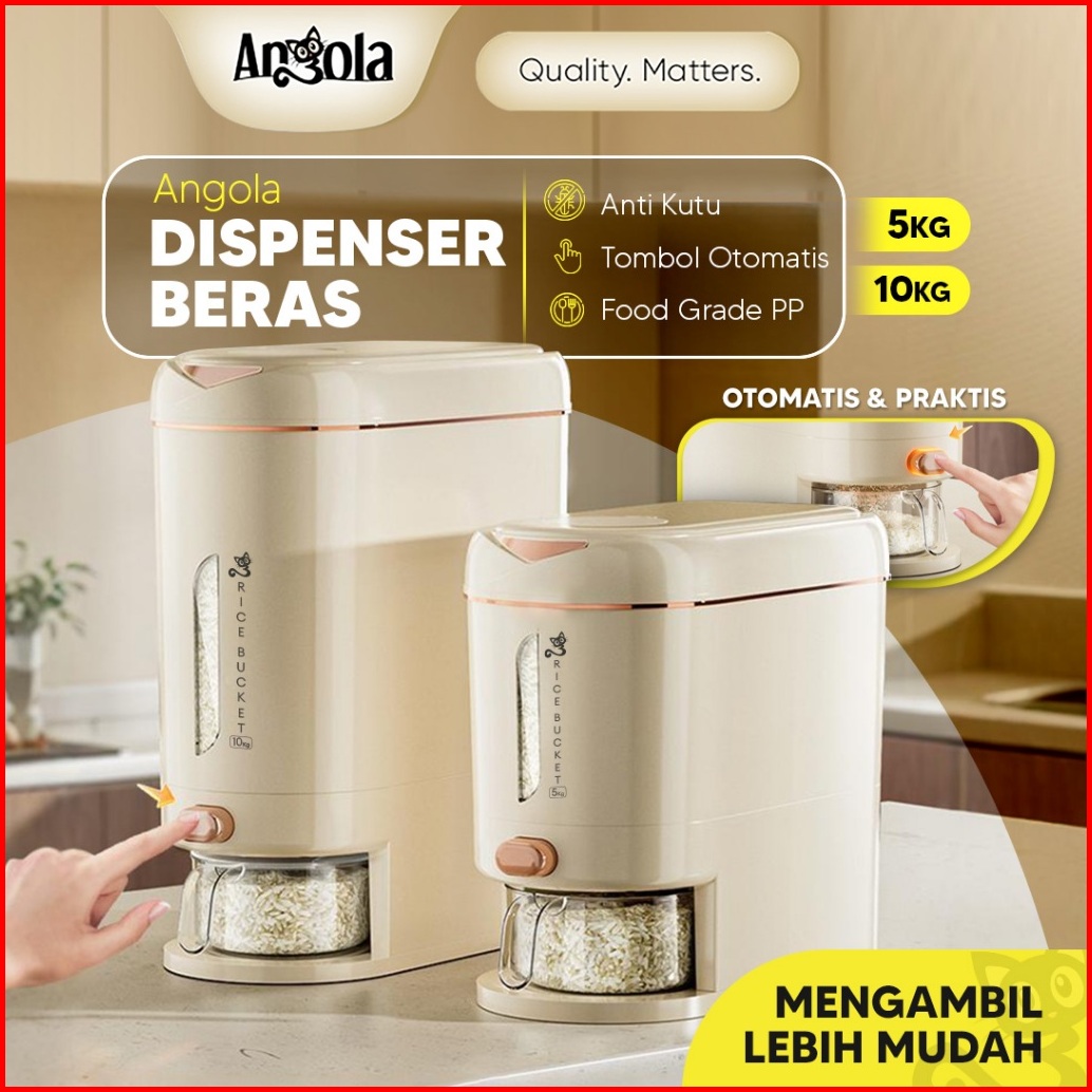 Angola Dispenser Beras Otomatis 5-10kg E29-e31 Tempat Penyimpanan Beras Food Grade Anti Kutu