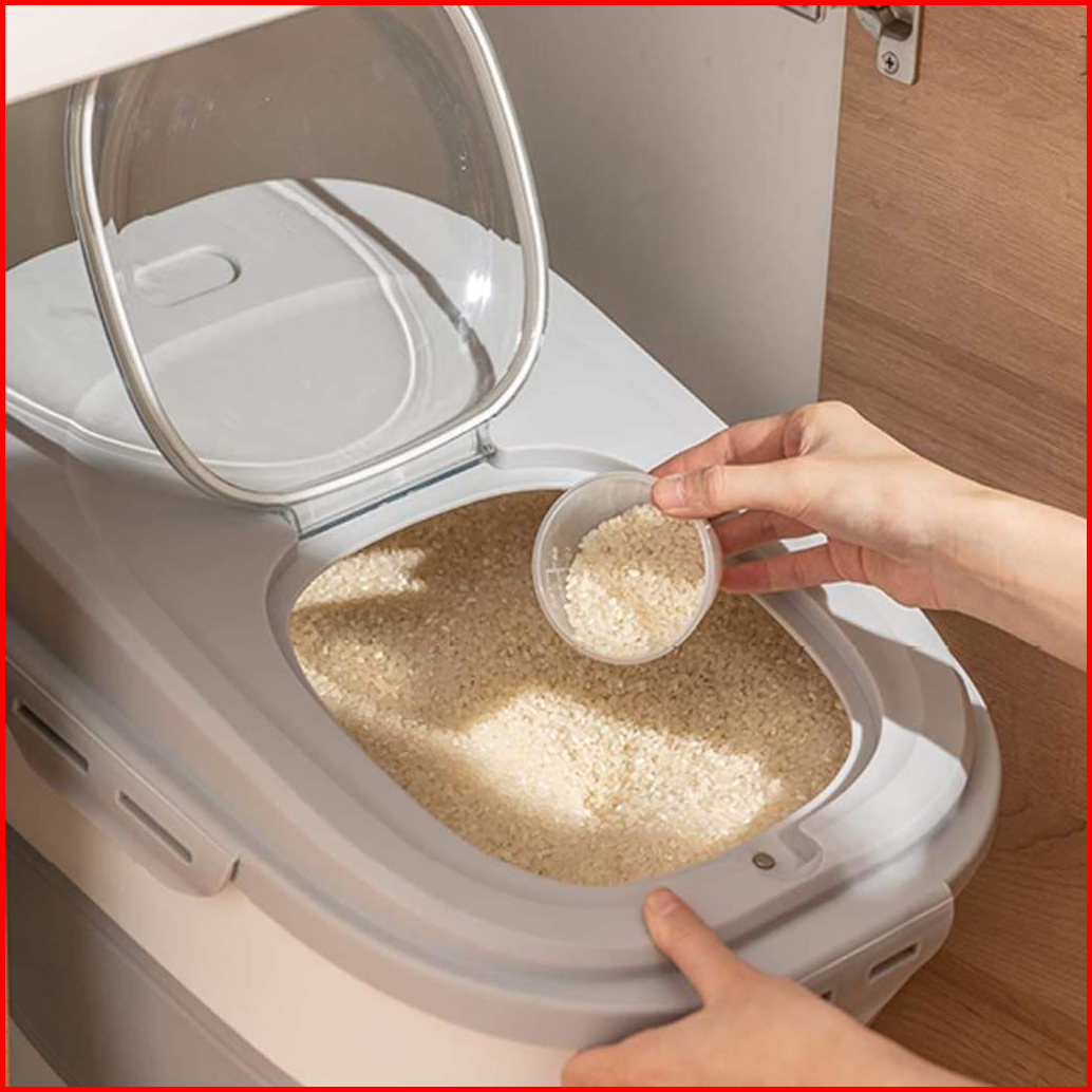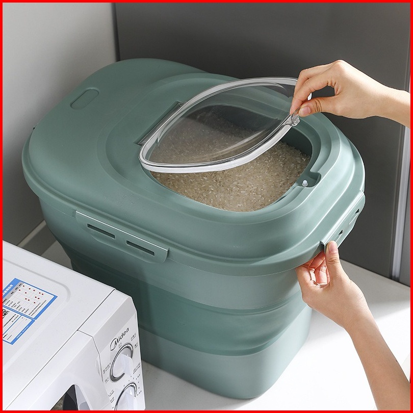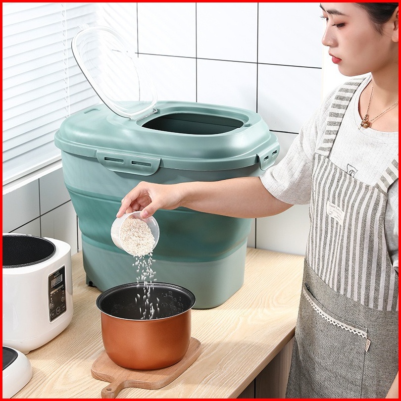 Tempat Penyimpanan Beras 25kg Foldable Rice Container Storage Dispenser Beras Free Cangkir Stockami C259