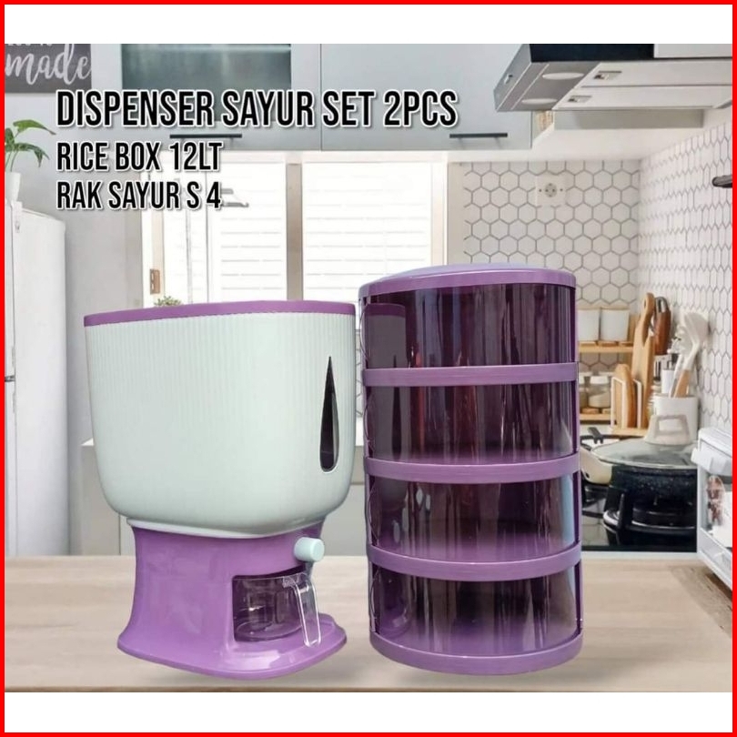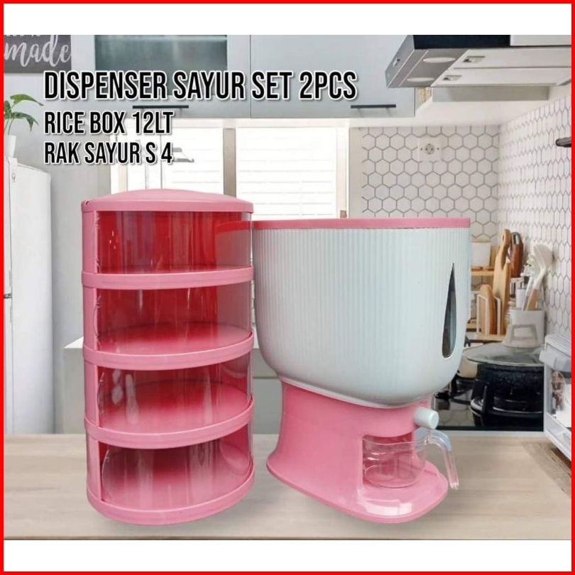 Dispenser Beras 10kg Satu Set Dengan Tudung Saji 4 Susun Belum Dirakit