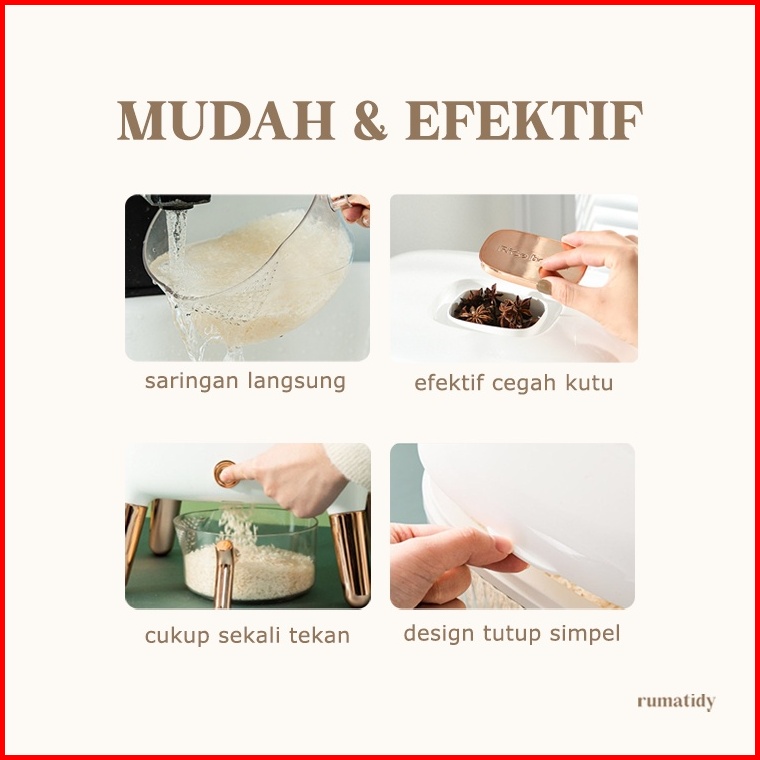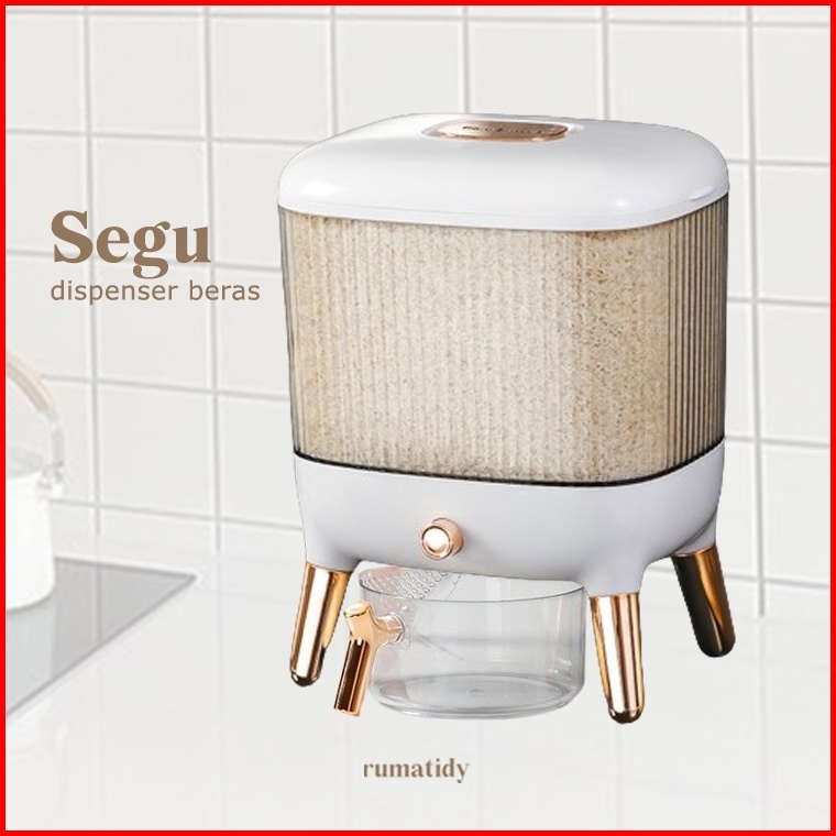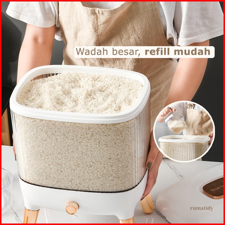 Rumatidysegu Dispenser Beras Sultan 10kg Dengan Takaran 1 Liter Kontainer Beras Mewah Kotak Beras