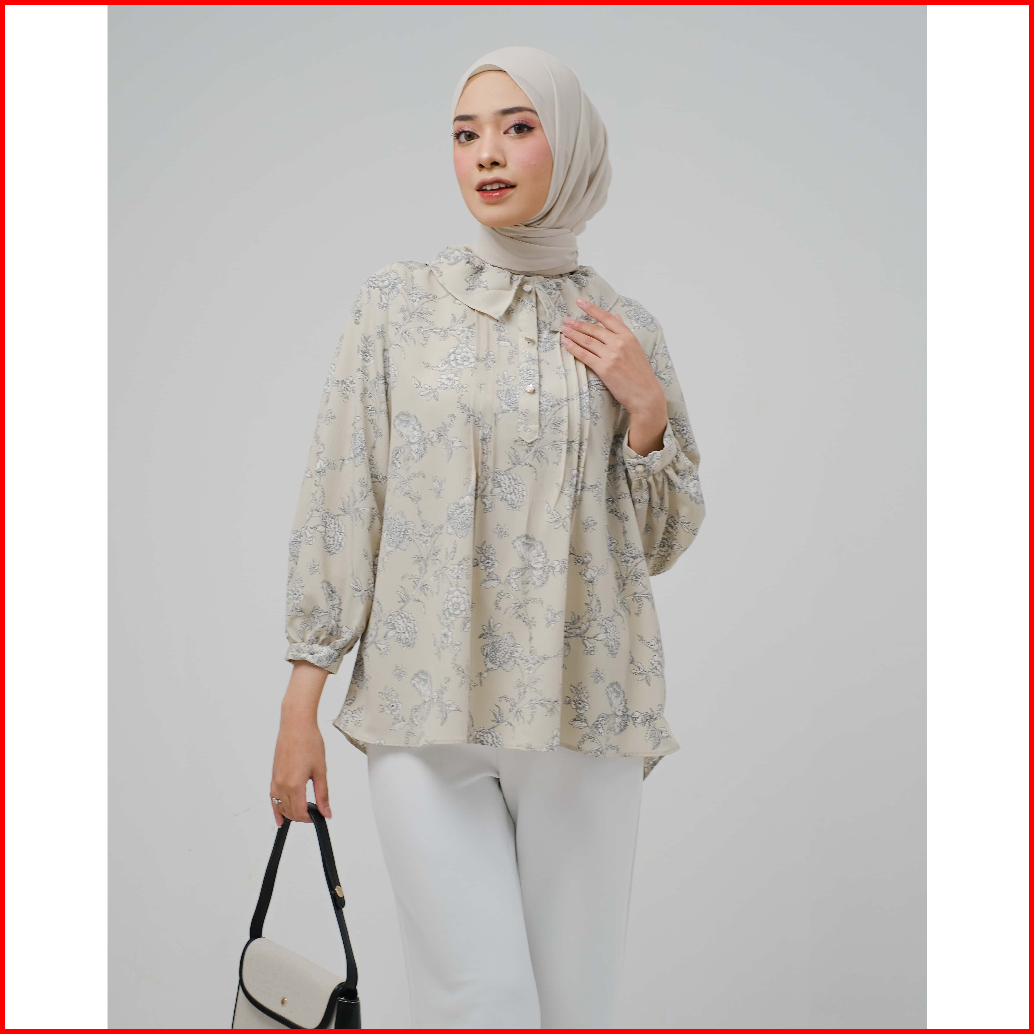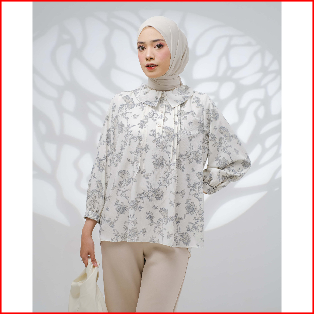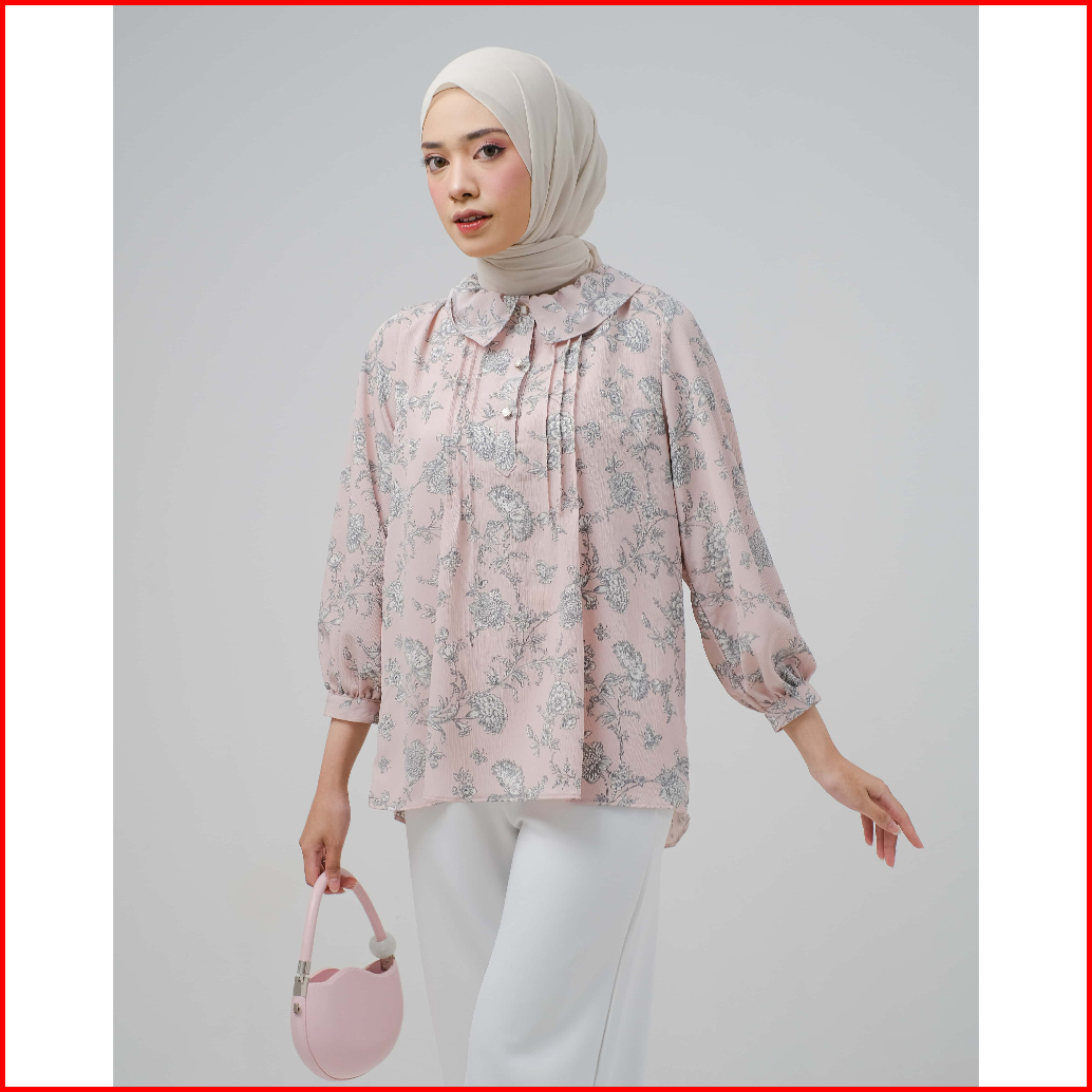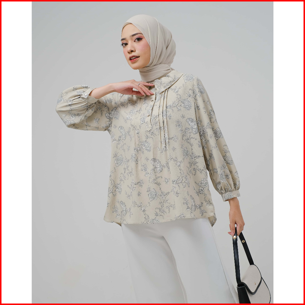 Mayoutfit Orsla Blouse Blus Crinkle Wanita Motif Bunga Kancing Depan