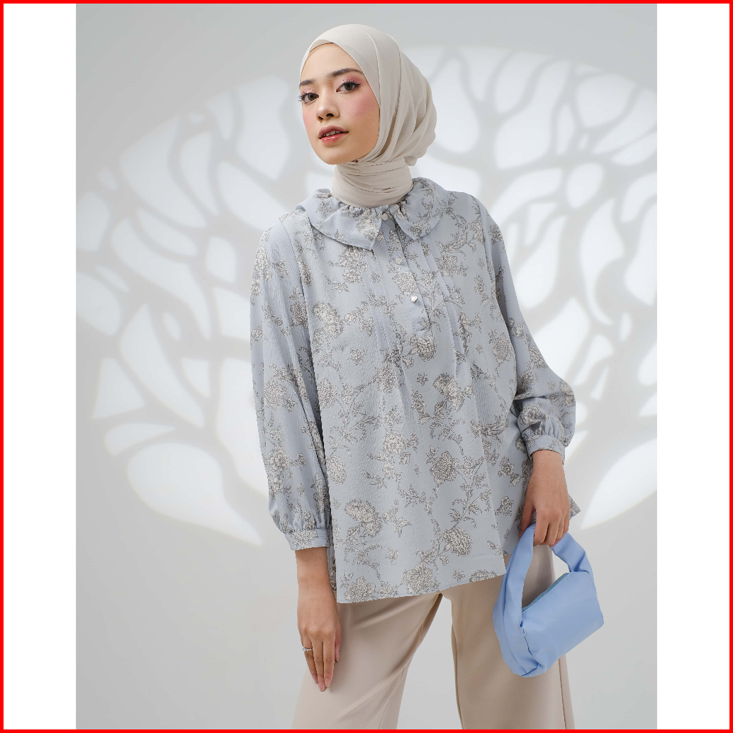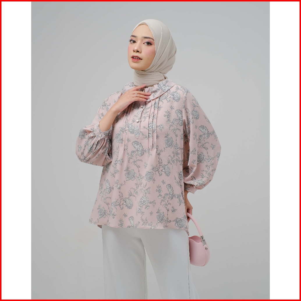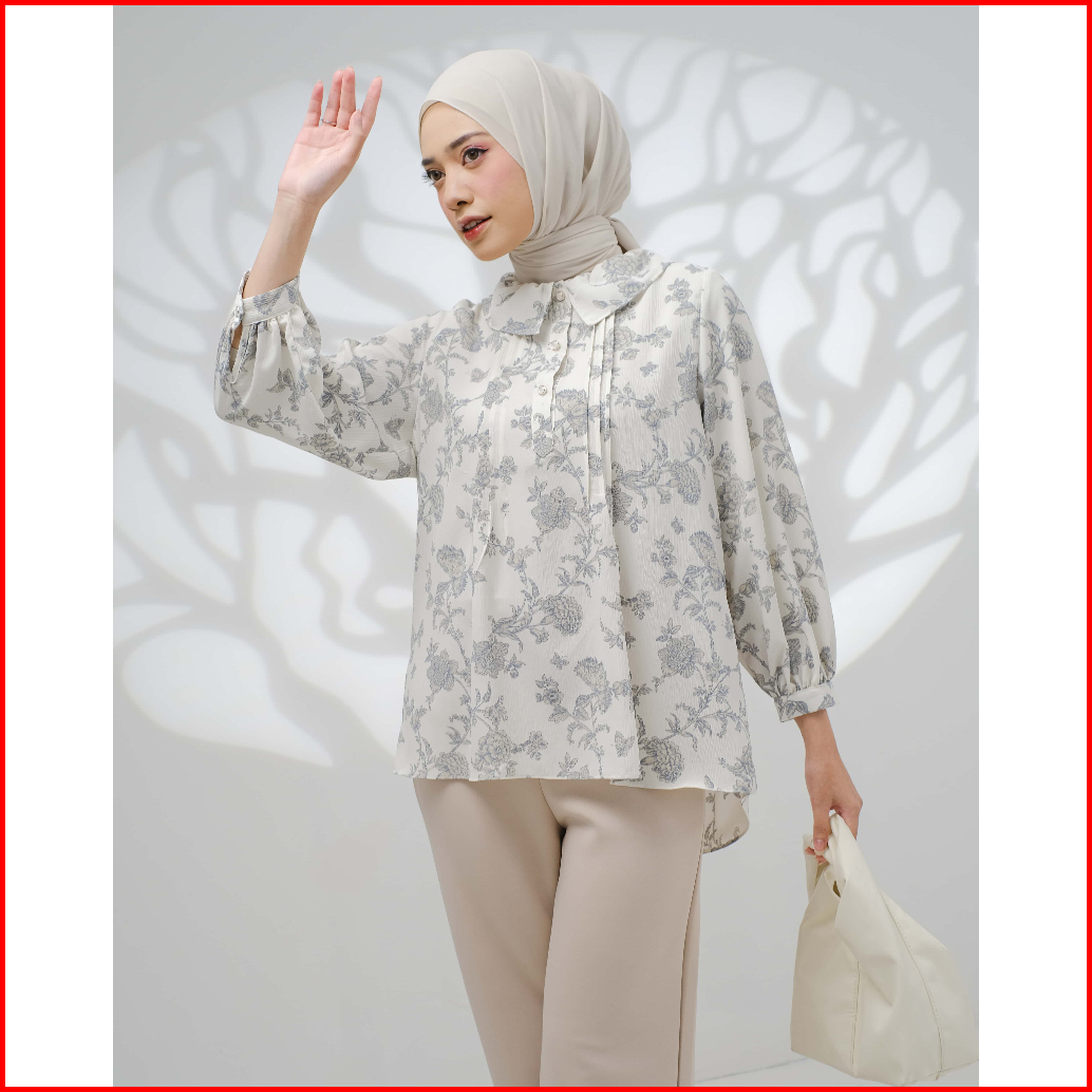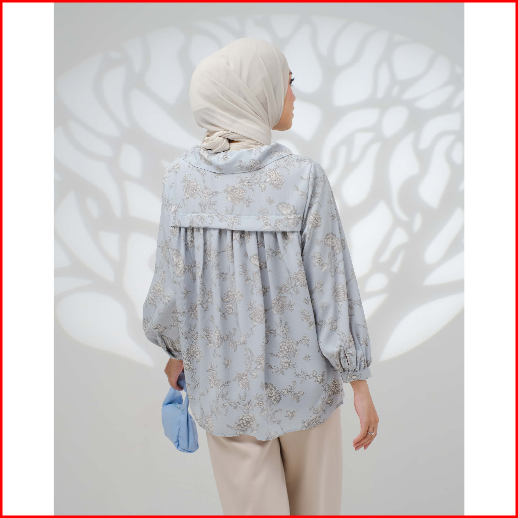 Mayoutfit Orsla Blouse Blus Crinkle Wanita Motif Bunga Kancing Depan