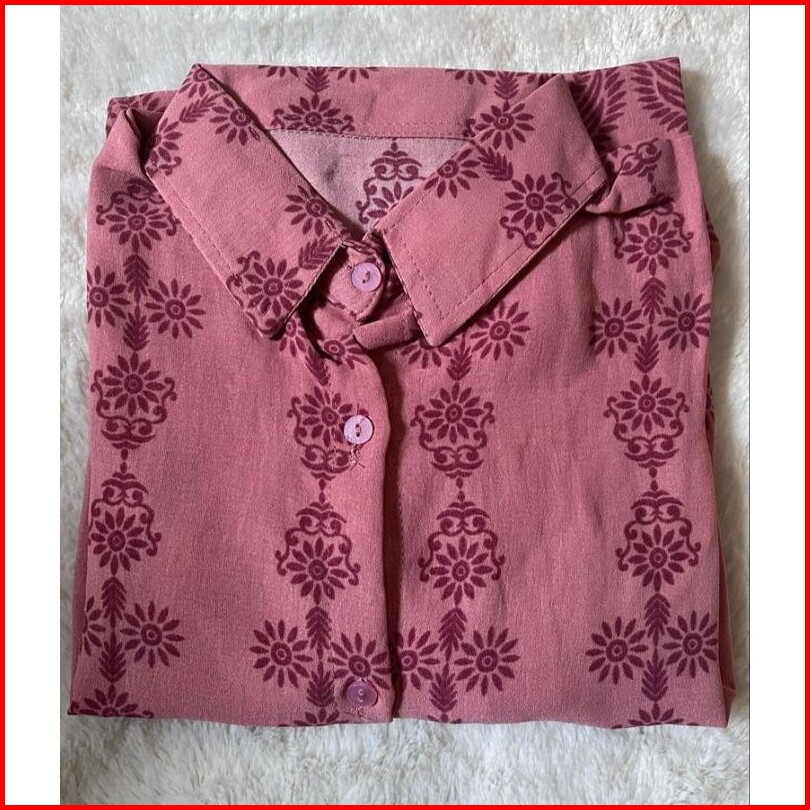 Fatin Munna Blouse Plisket Atasan Wanita Bahan Crinkle Motif Etnik