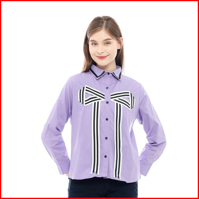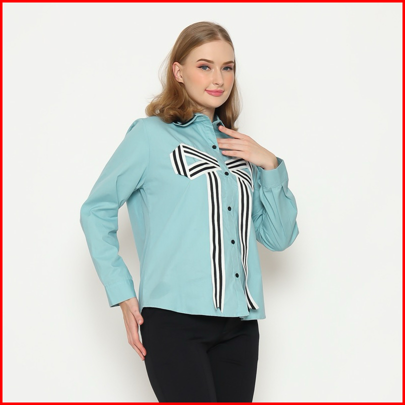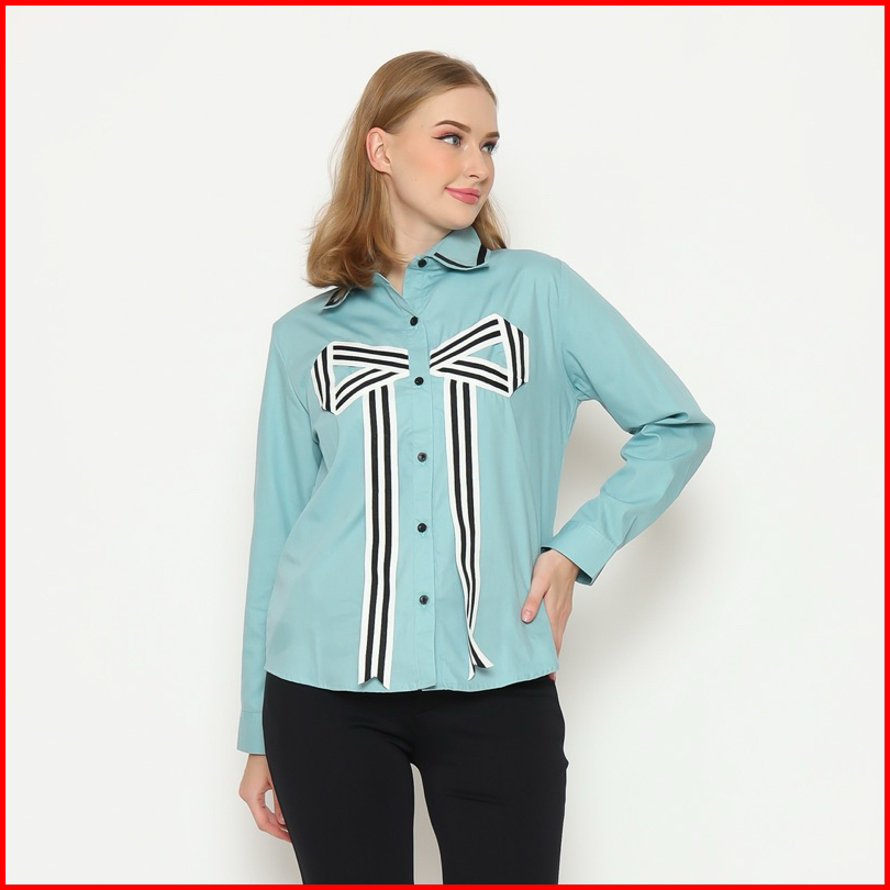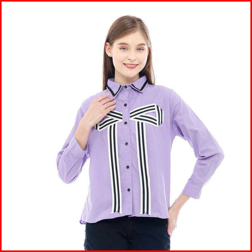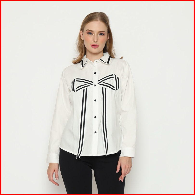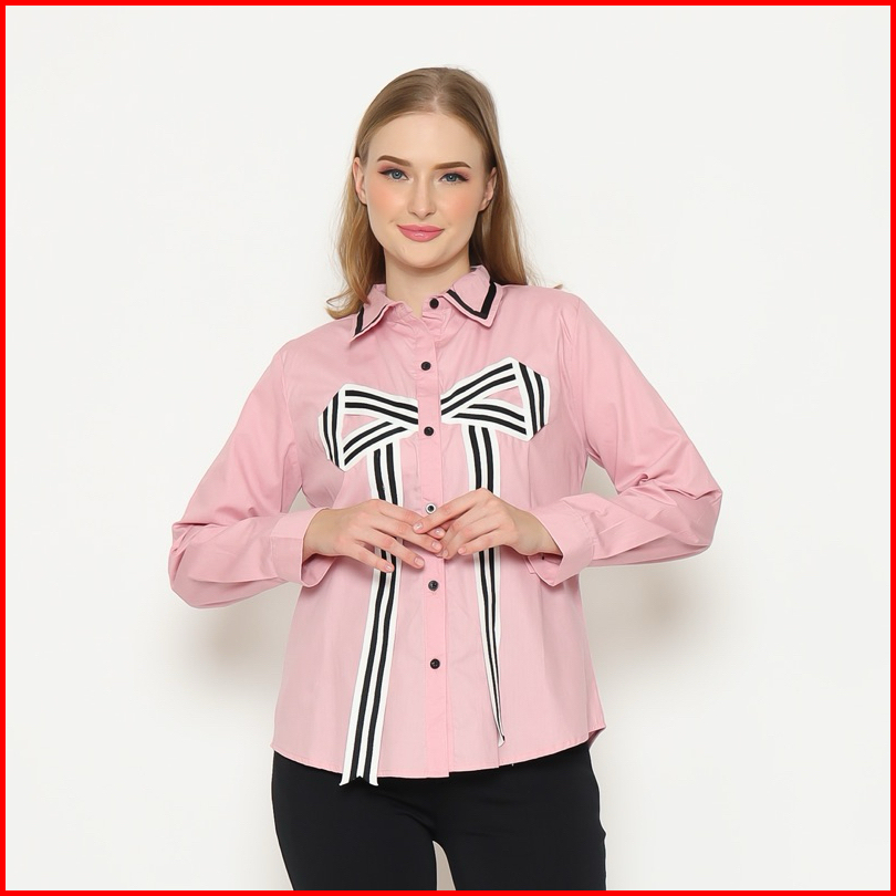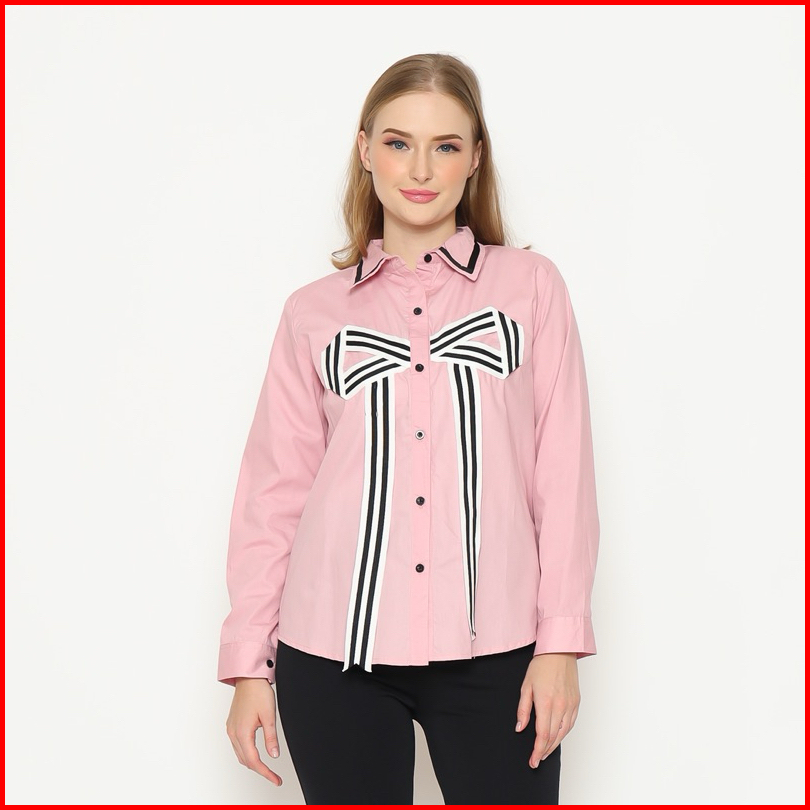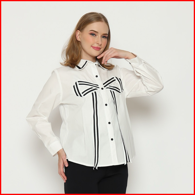 Senchi - Hitomi Large Ribbon Shirt Atasan Kemeja Pita Besar Lucu Kemeja Style Korea Jepang
