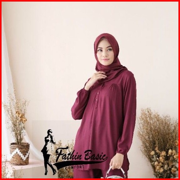 Nuansa Merah - Blouse Polos Rayon - Pink - Marun - Peach - Burgundy - Fathin Basic - Tanahabang