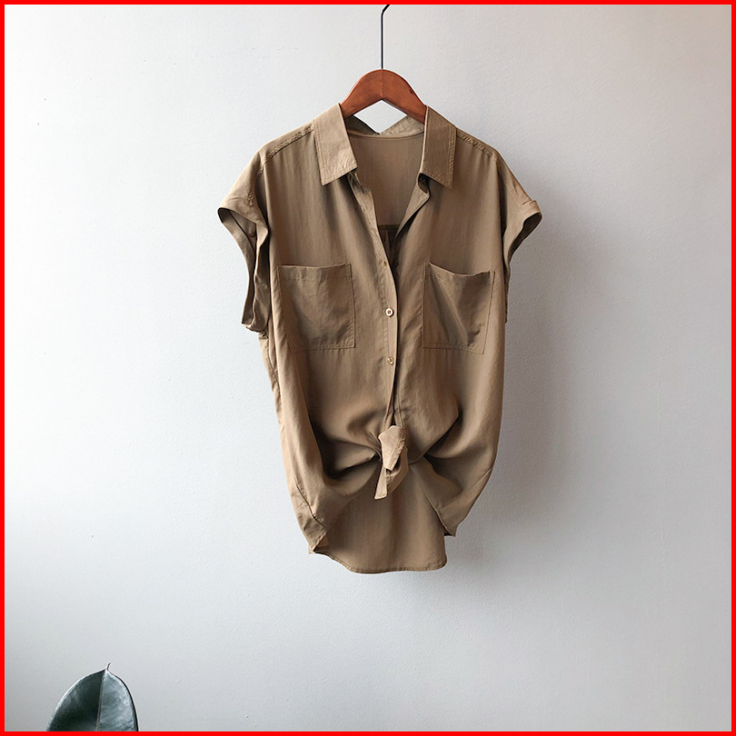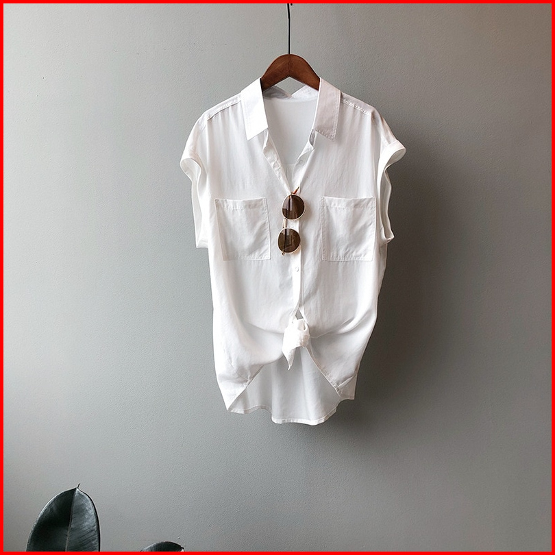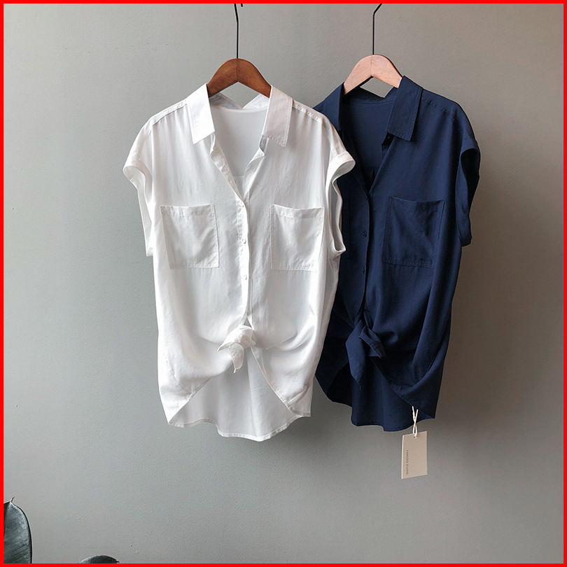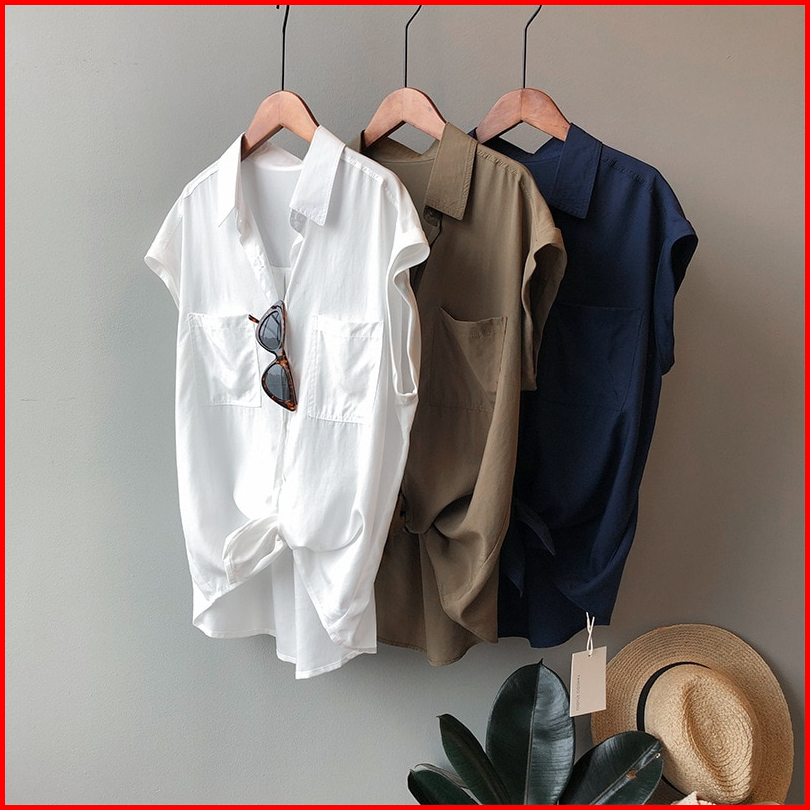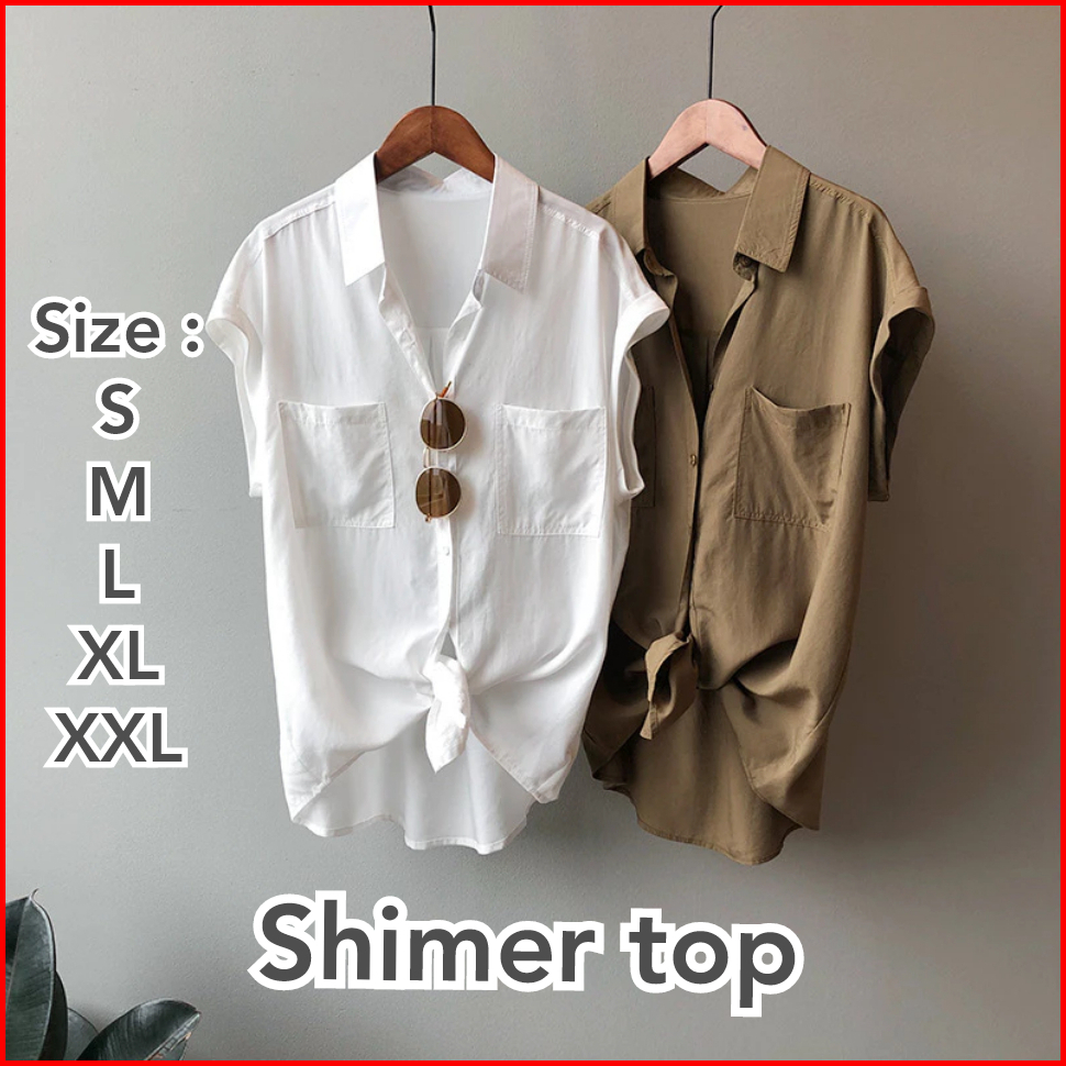 Busana Baju Muslim Shimer Top Blouse Korean Style Baju Atasan Wanita Katun Twill Atasan Kancing Lengan Pendek