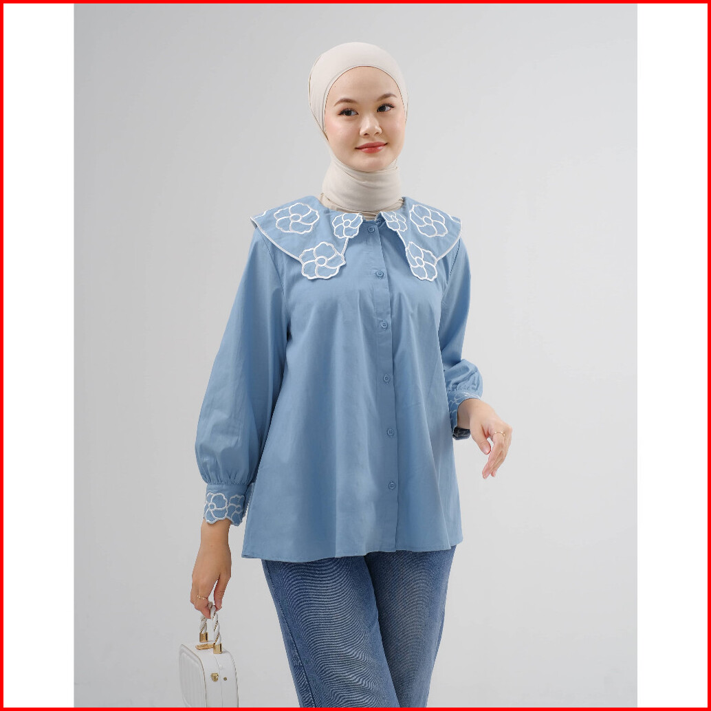 Mayoutfit Cecya Shirt Kemeja Basic Wanita Kerah Bordir Floral Bunga