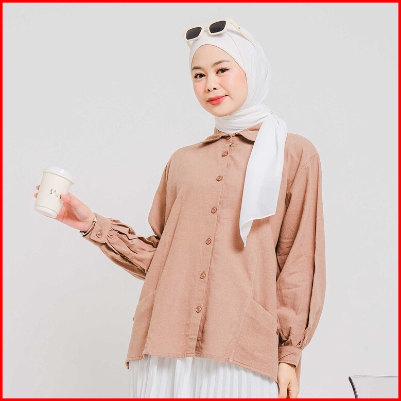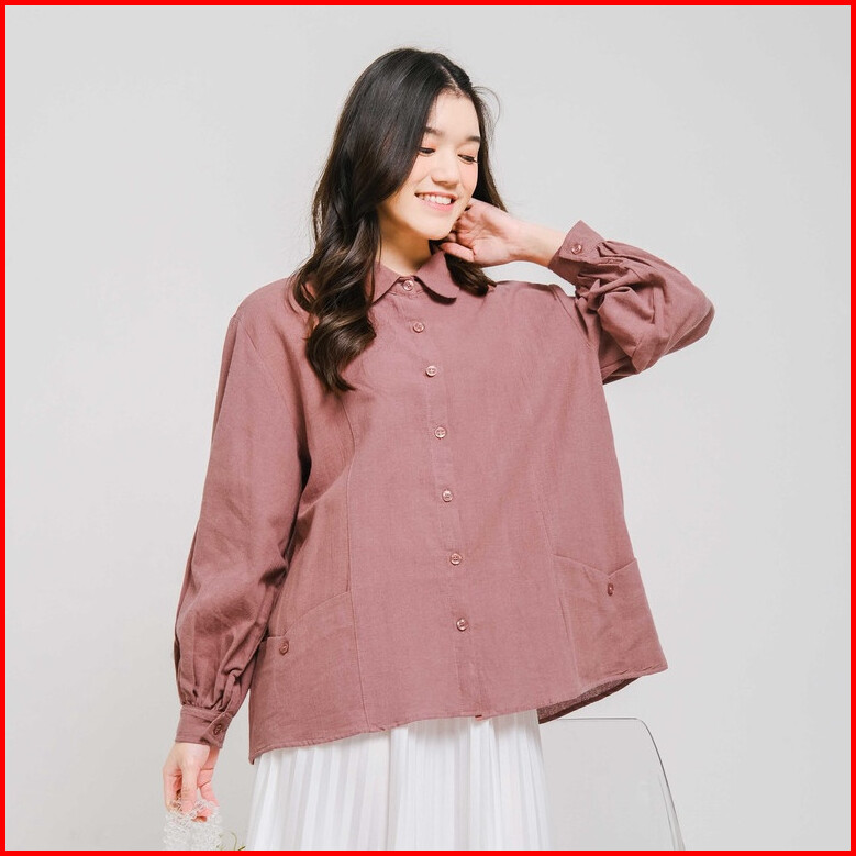 Mayoutfit Youlla Shirt Atasan Linen Wanita Saku Depan