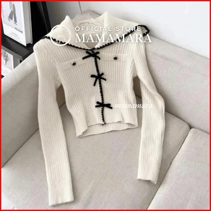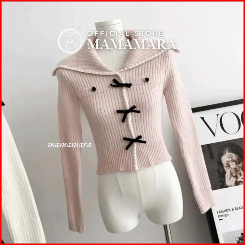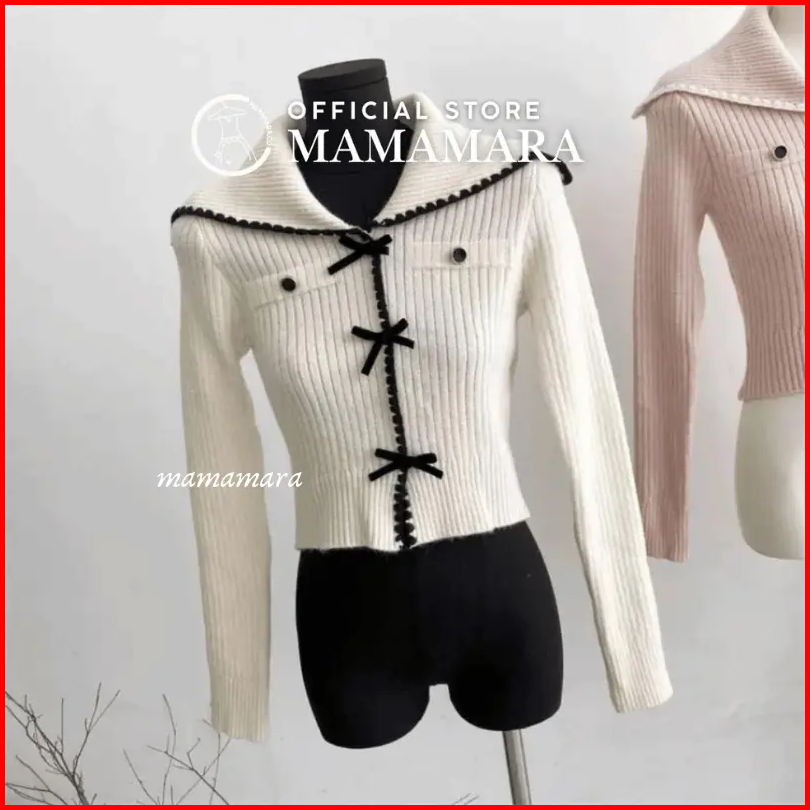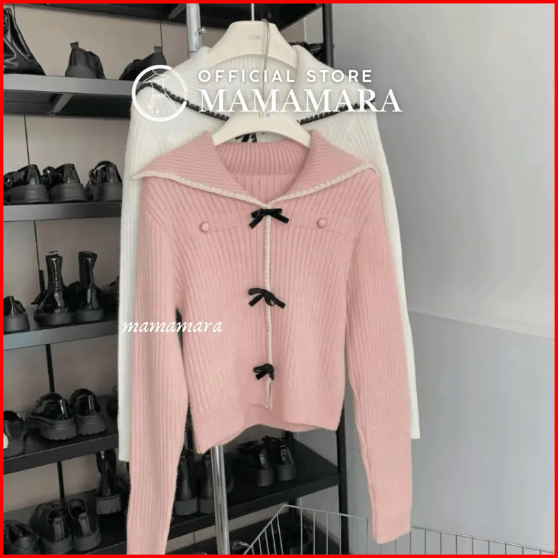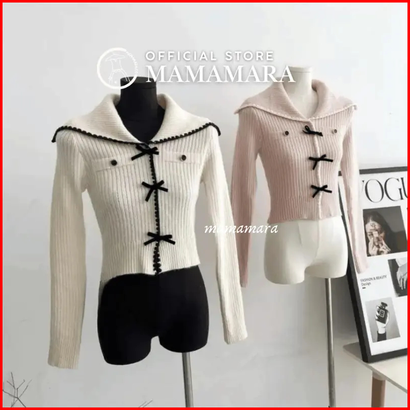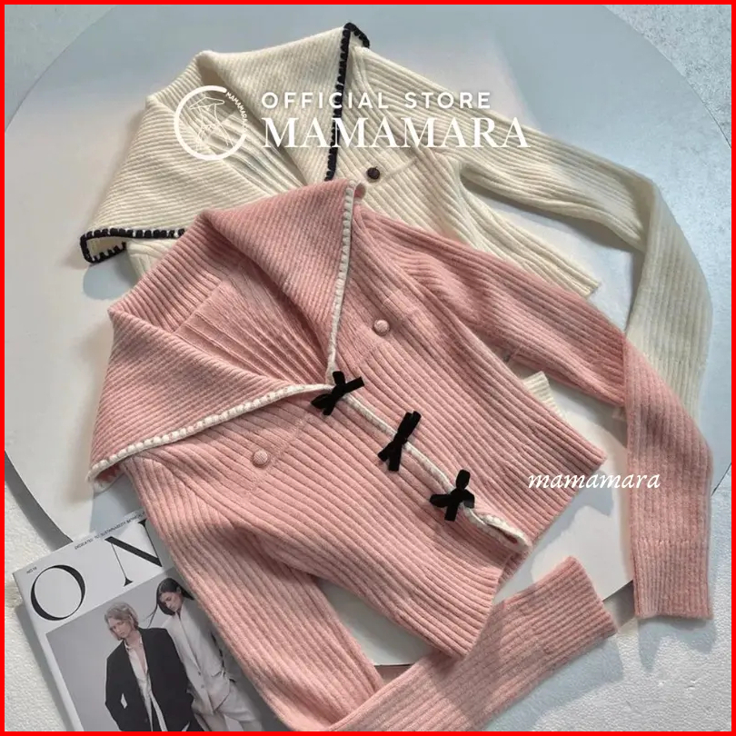 Mamamara - Cardigan Sweater Pita Imut Rajut Knitwear Korean Style