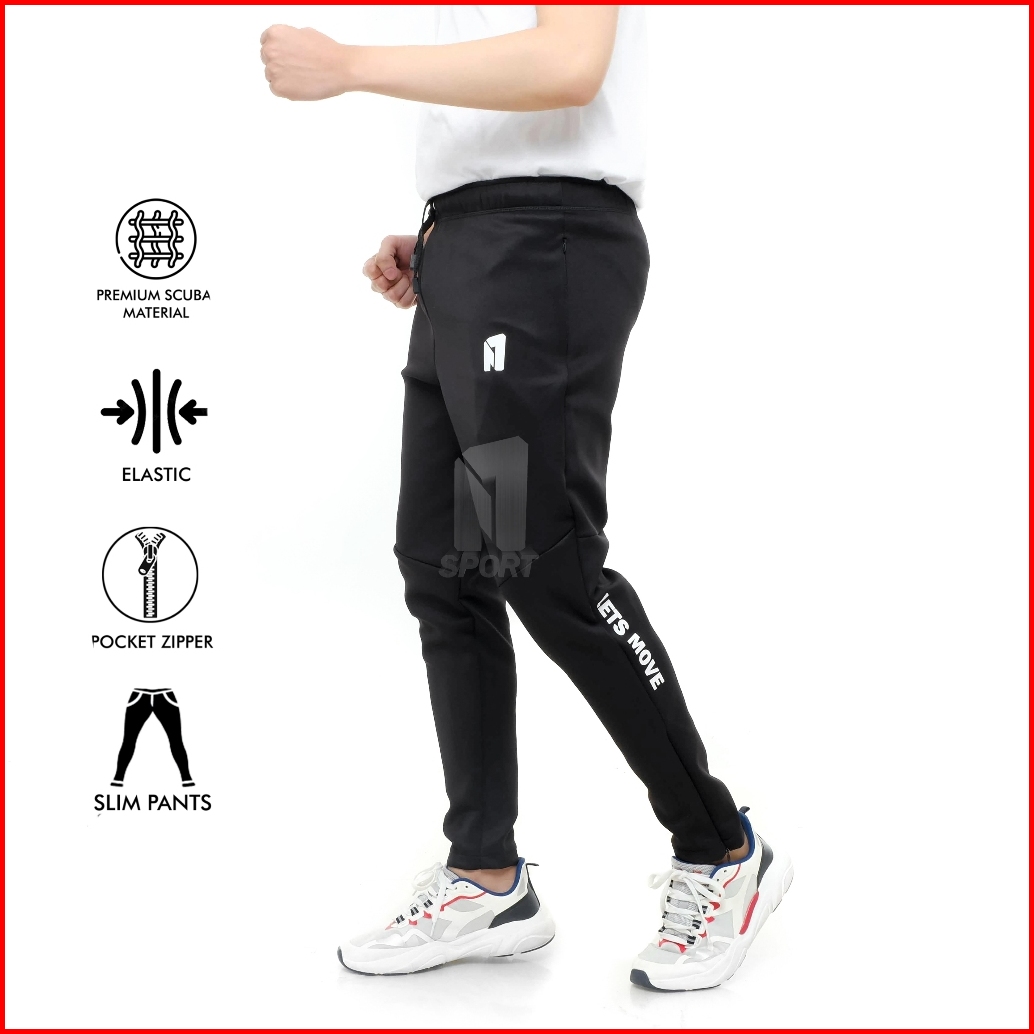Njstore Celana Training Olahraga Pria Wanita Trening Panjang Running Pants Slim Fit Zipper