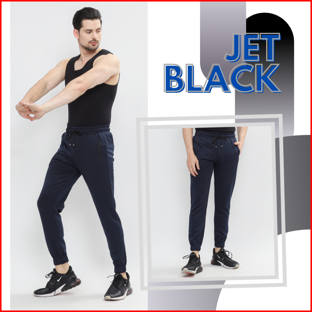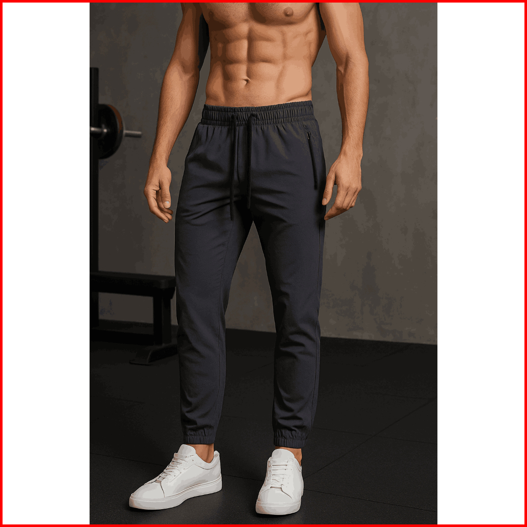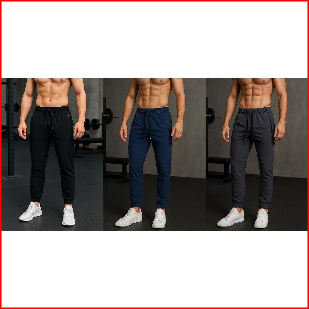Celana Jogger Pria Panjang Olahraga Gym Bahan Adem Ringan Zipper Samping Tali Serut