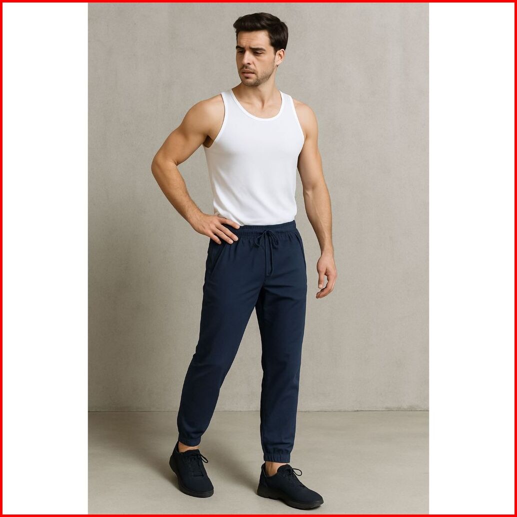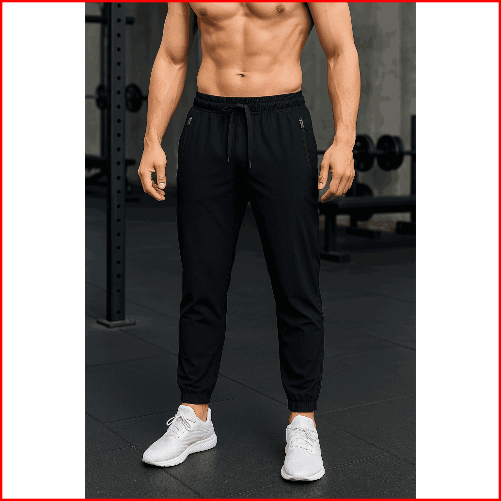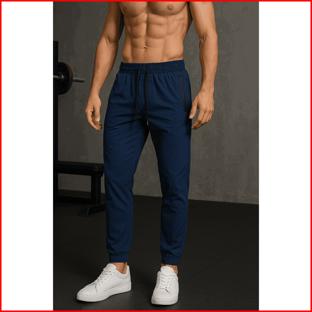 Celana Jogger Pria Panjang Olahraga Gym Bahan Adem Ringan Zipper Samping Tali Serut