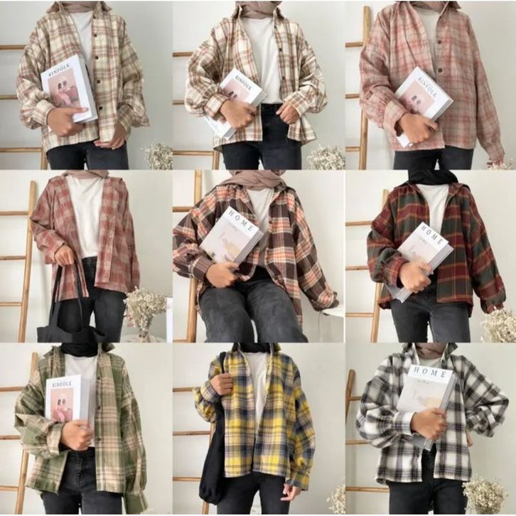 Kemeja Wanita Casual Blouse Kotak-kotak Flanel Baju Korean Style Wanita Atasan Wanita Lengan Panjang