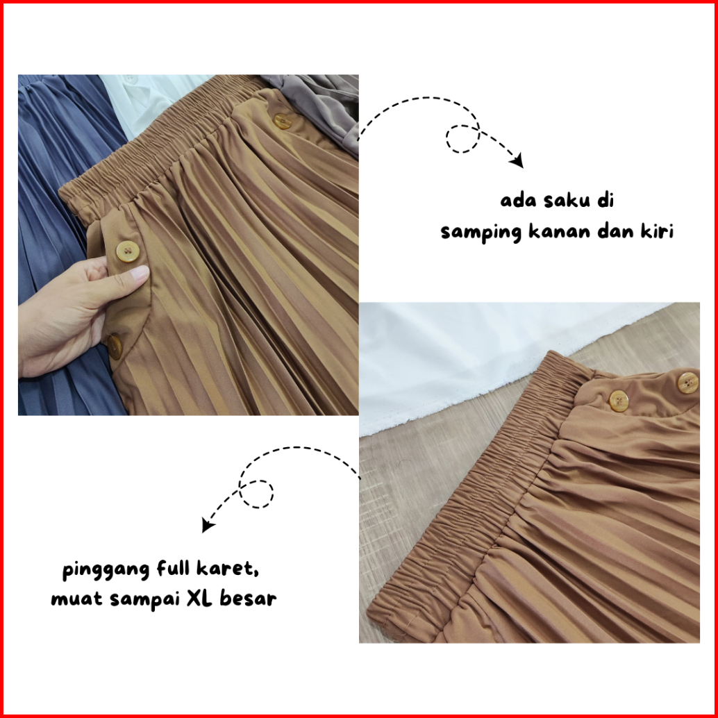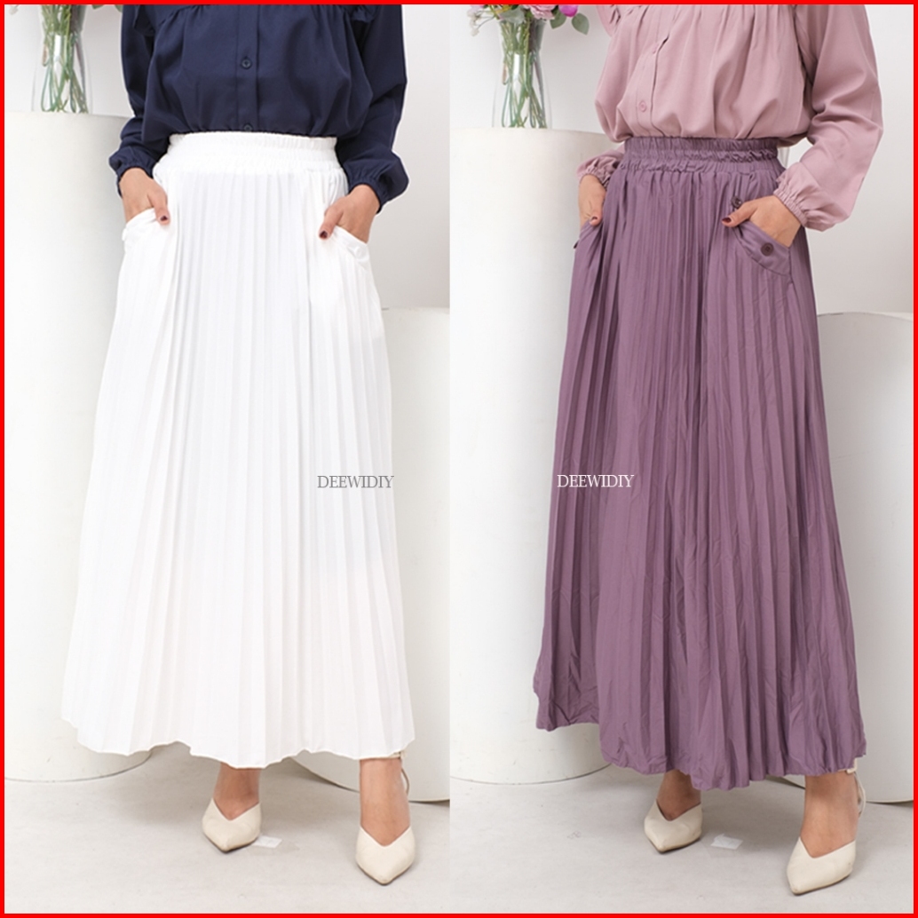 Rok Plisket Ada Saku Rok Plisket A-line Premium Rok Kerja Wanita Yori Skirt Deewidiy