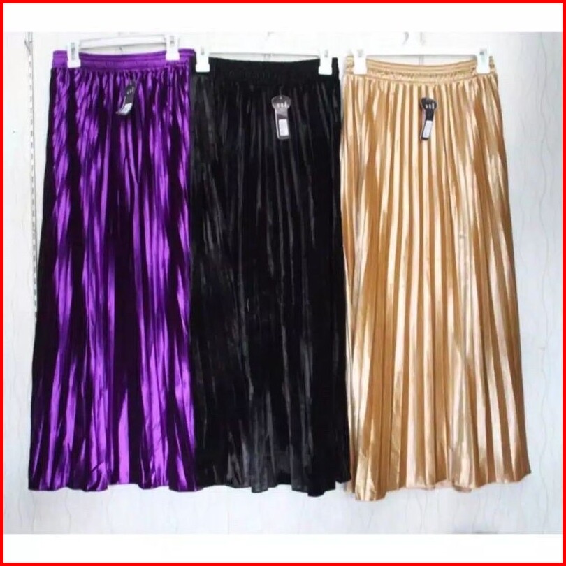 Rok Plisket Velvet Bludru Import Premium Rok Plisket Bludru Premium Panjang