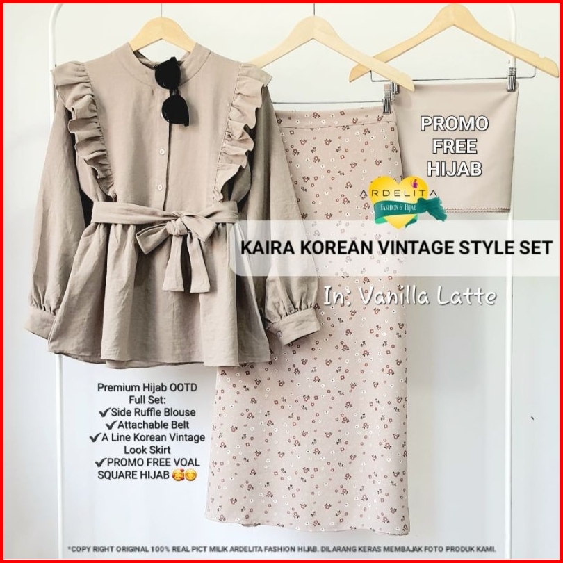 Kaira Korean Vintage Style Set 4 In 1 Exclusive Collection Paket Hemat Lengkap Premium Quality Set Rok Korean Style Baju