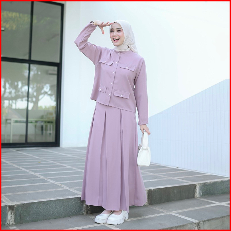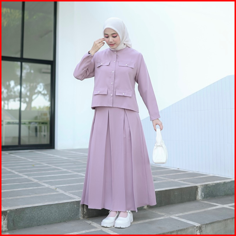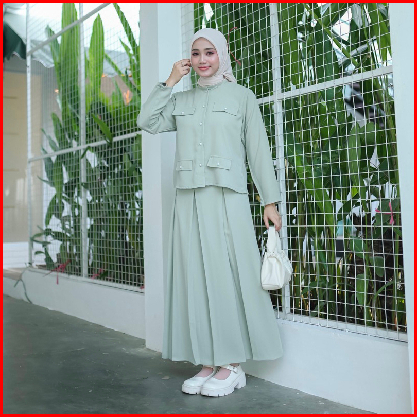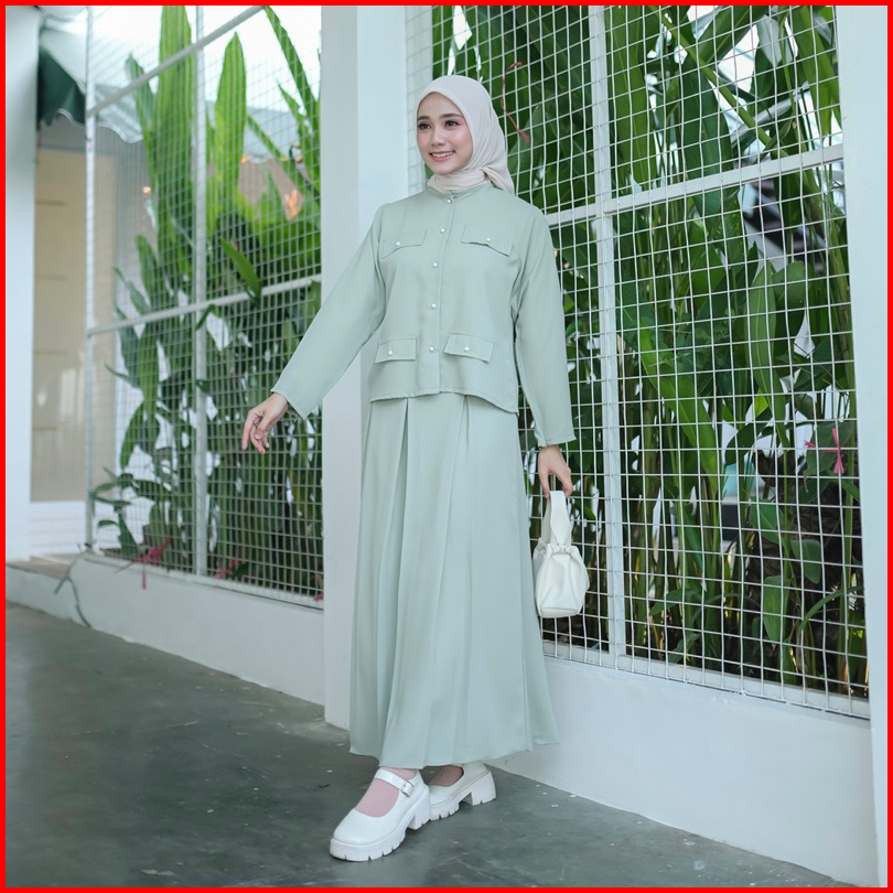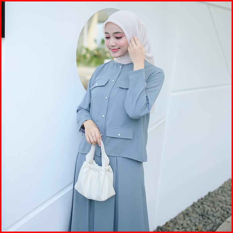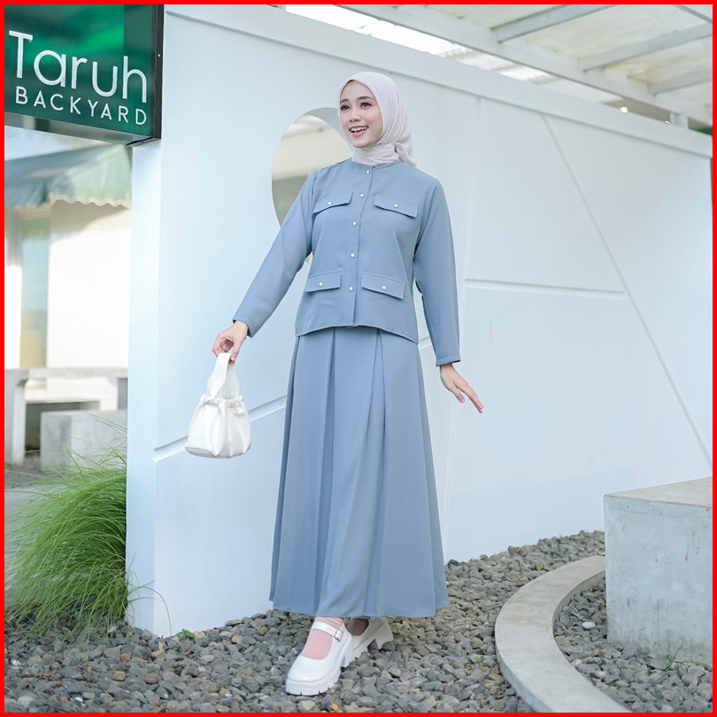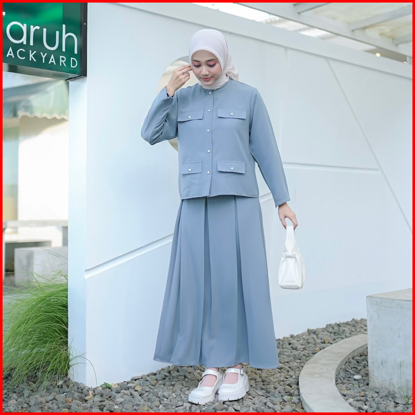 Rereyshop Lily One Set Outer Blouse Rok Matterial Royal Twist Premium Simple Daily Outfit