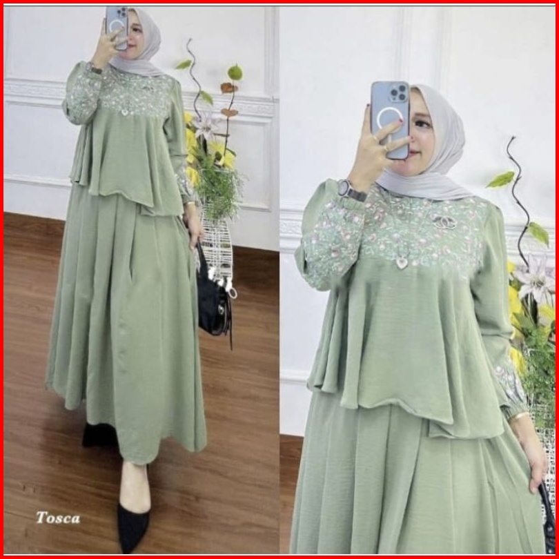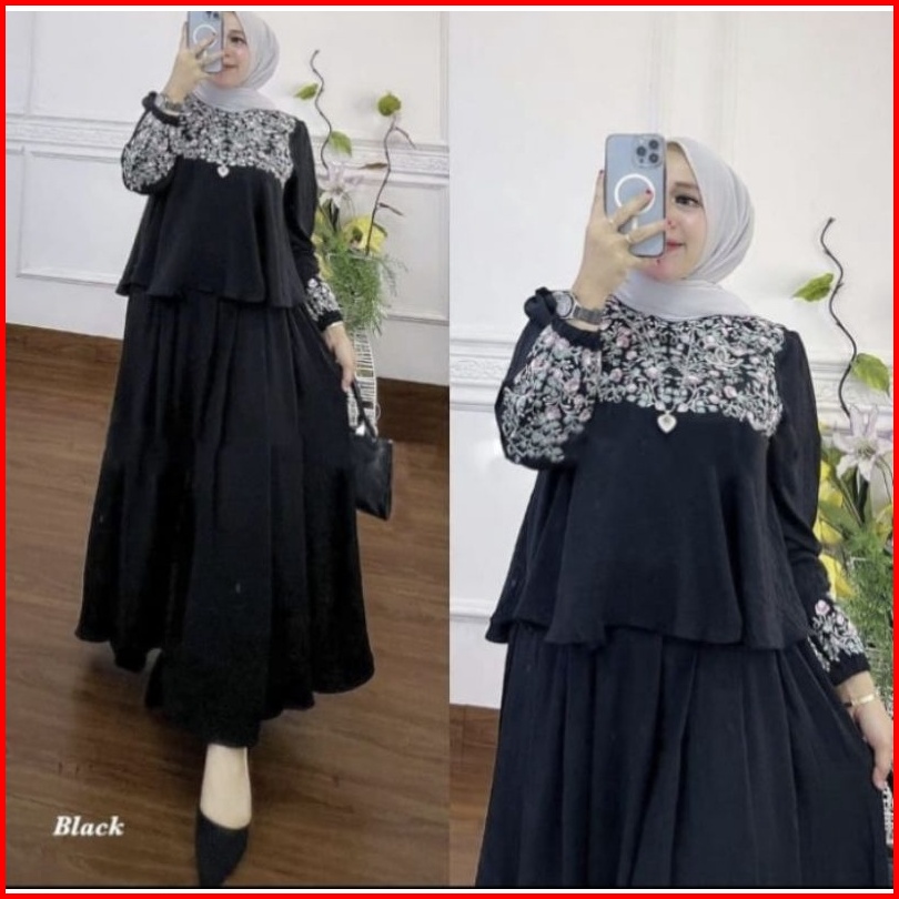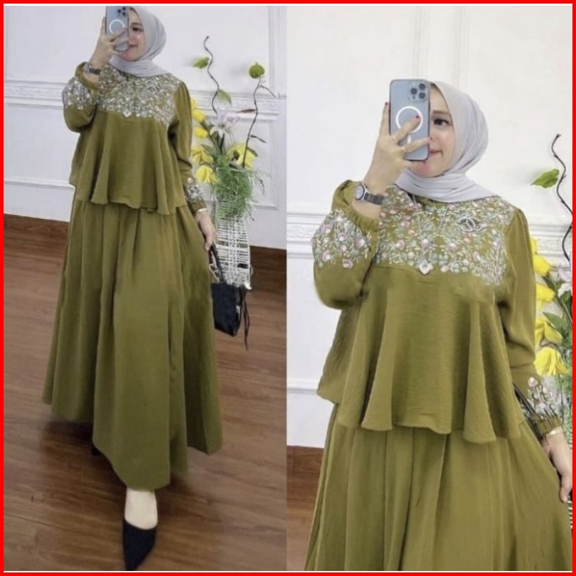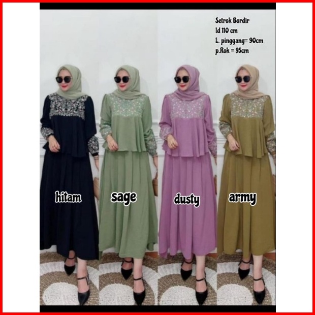 Baju Mozay Set Rok Airflow Terbaru 2023 Stelan Wanita Motif Bordiran One Set Terhits