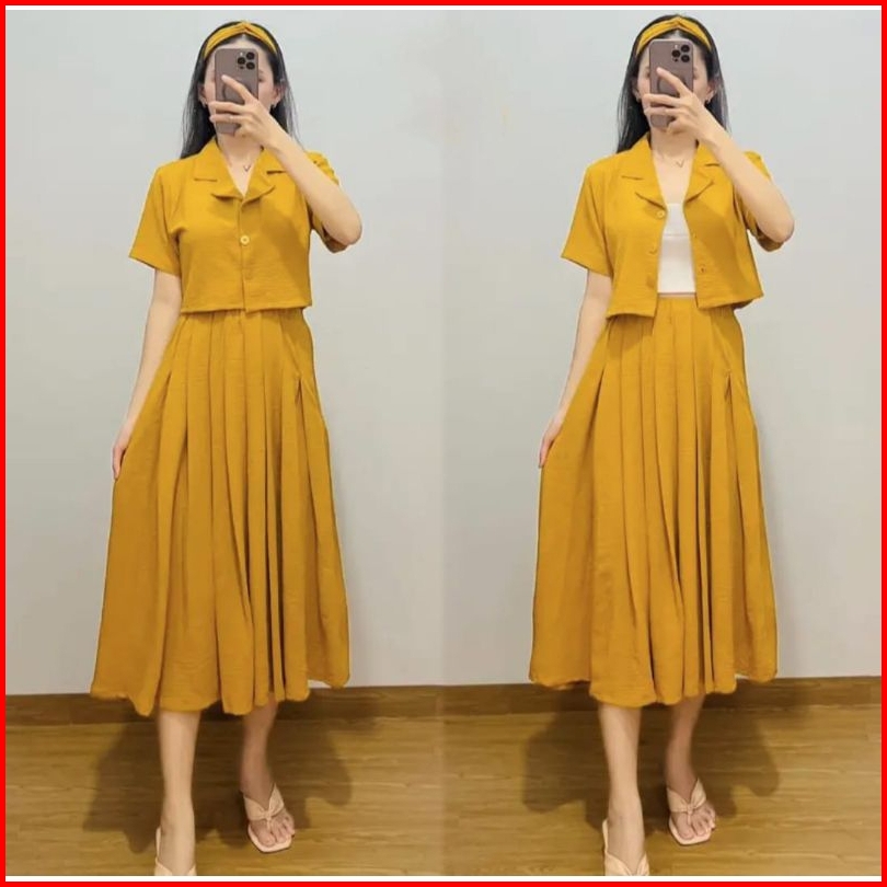 04569 Madieca Button Collar Airflow Long Skirt Set Rok