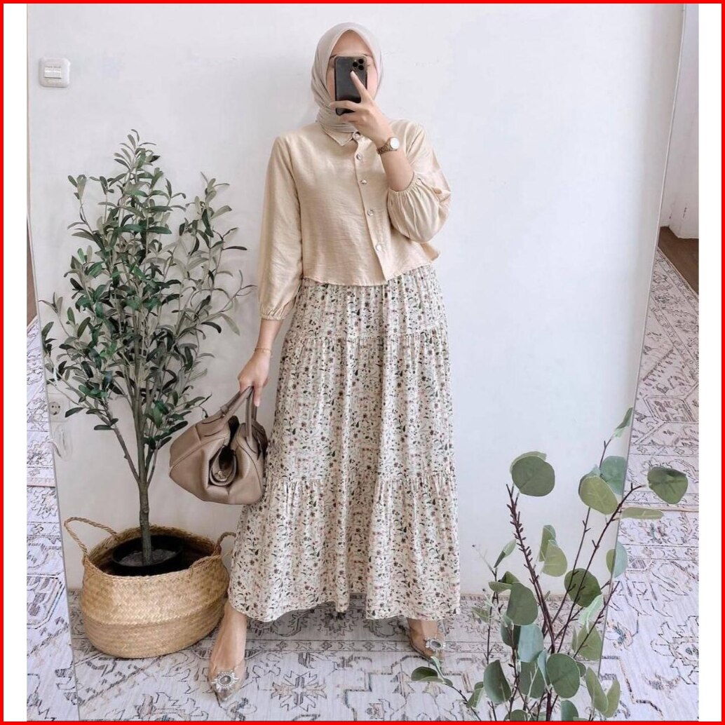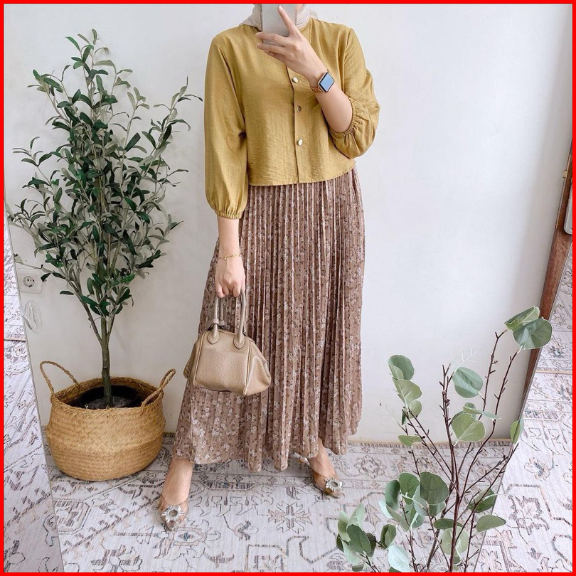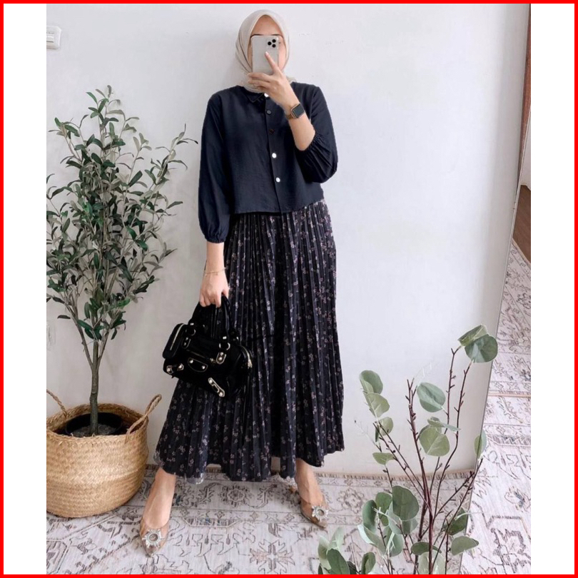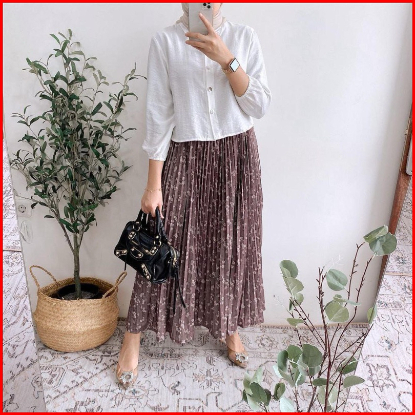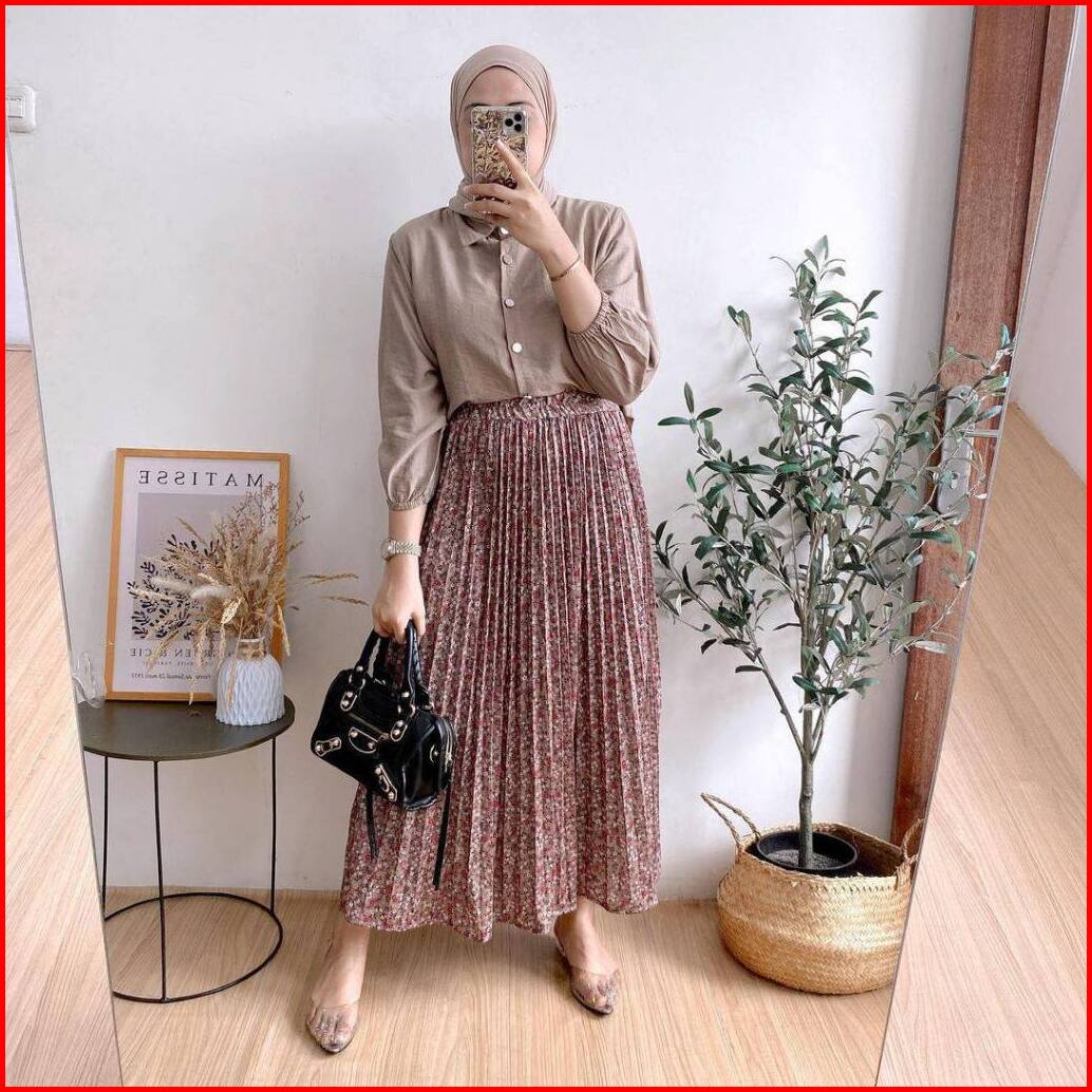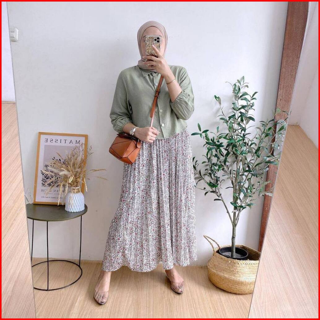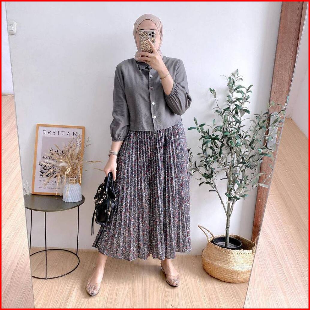 Ready Baju Setelan Rok Plisket One Set Rok Premium Korean Style Zavika Linen