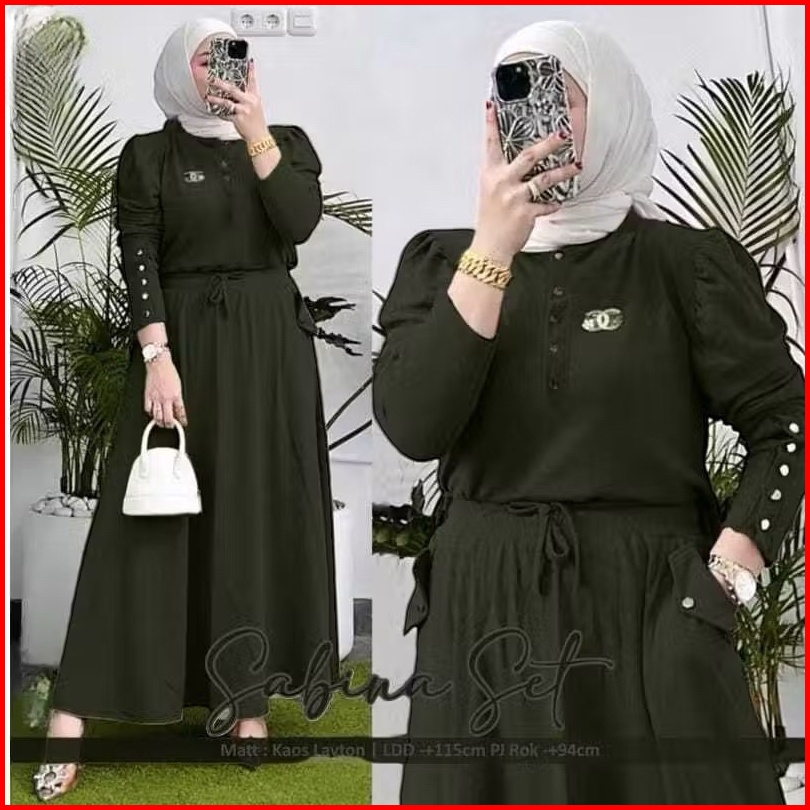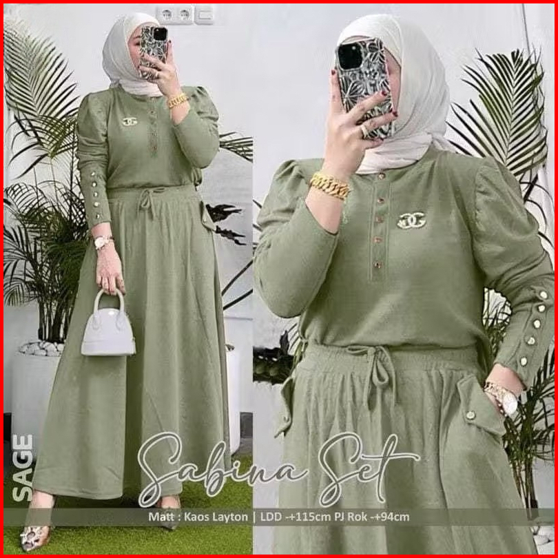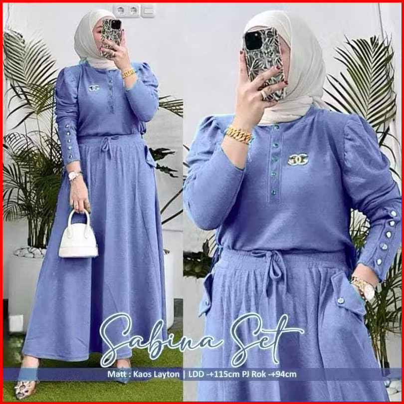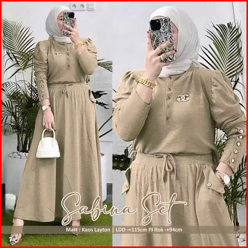 Sabina Set Rok Tangan Balon Knit Premium Setelan Rok Wanita Rib Knit One Set Rok Wanita Lengan Balon Setelan Polos Set T