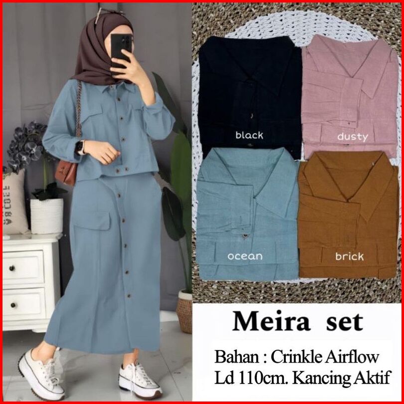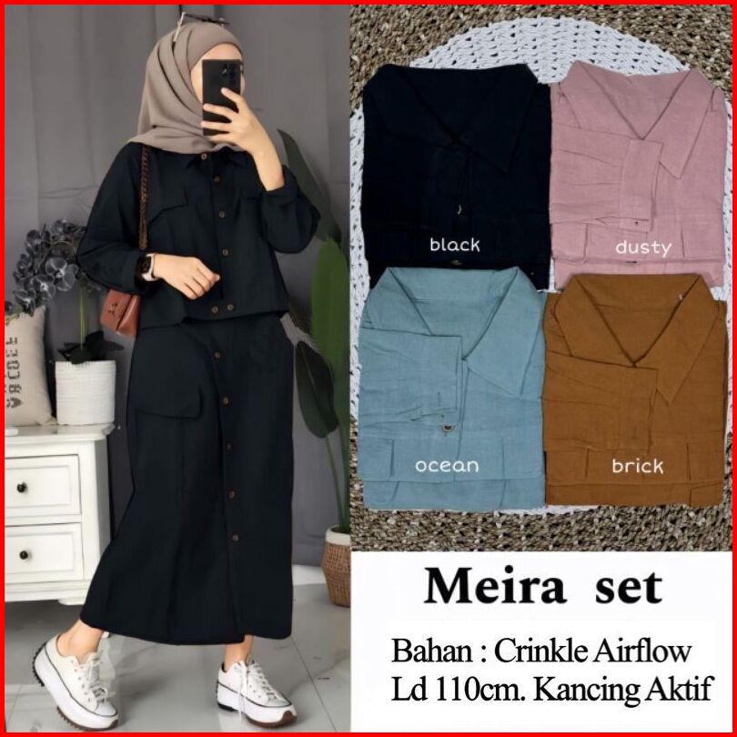 New Meira Set Rok Cargo Crinkle Airflow Kancing Aktif Setelan Meira One Set Meira Set Rok Meira Setelan Muslimah Rok Kek