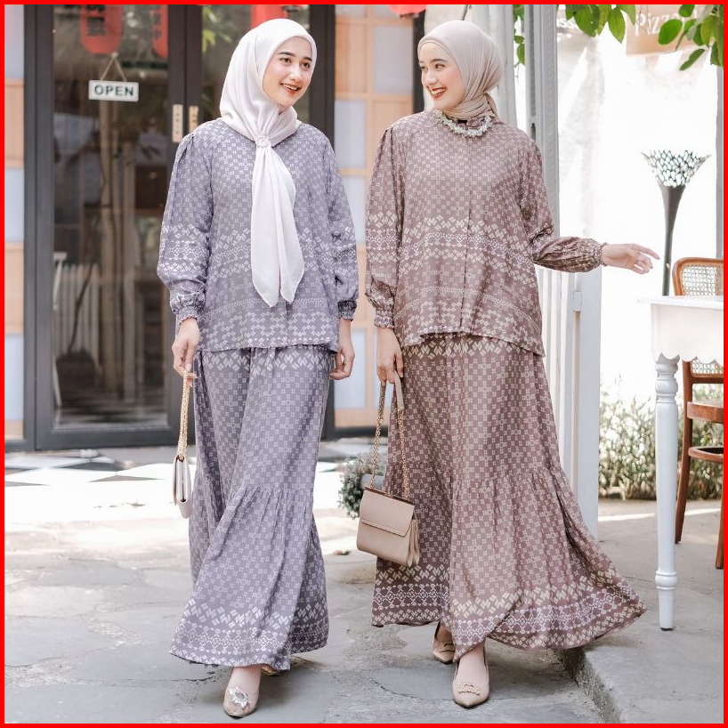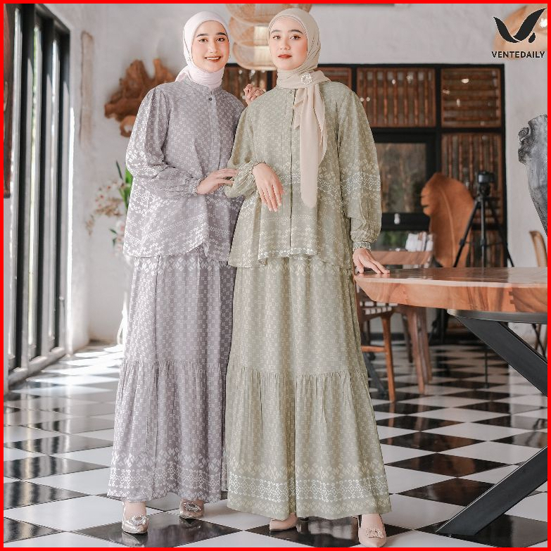 Ventedaily - Hafisa Set Rok Rayon Viscose Premium Motif Setelan Wanita Kekinian Kondangan