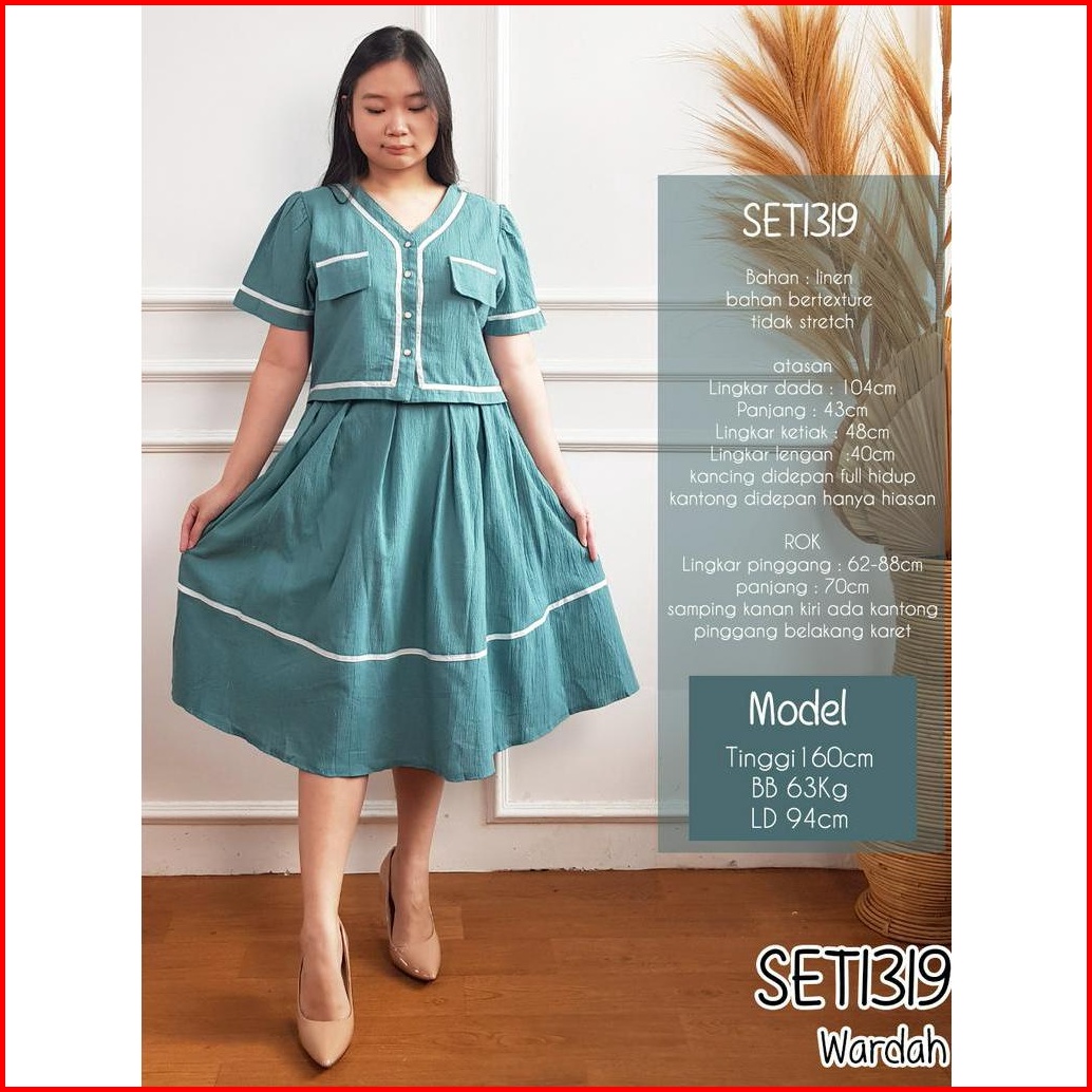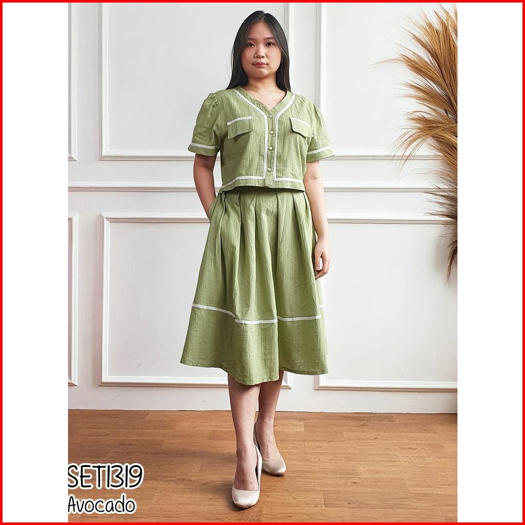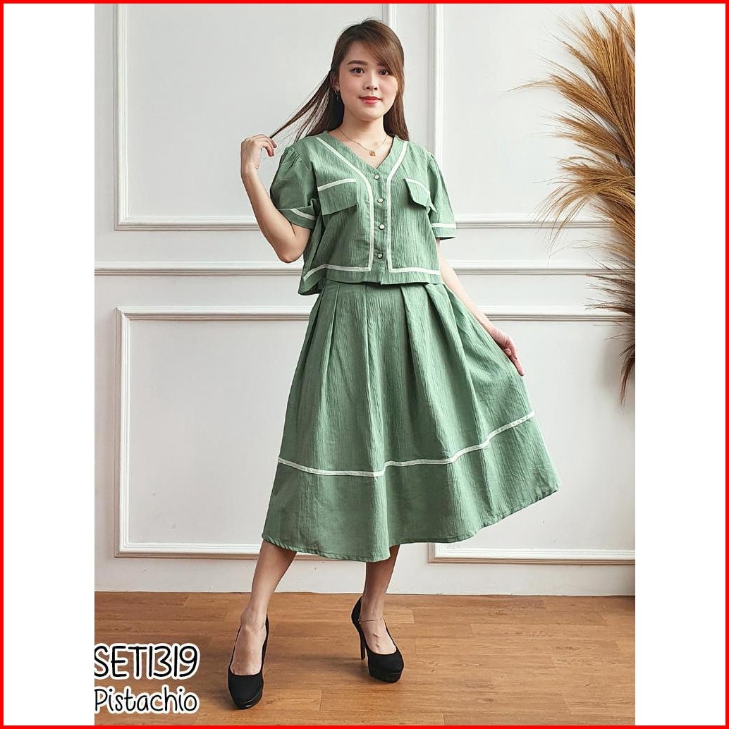 Missol One Set Wanita Atasan Dan Rok Flare Korean Style Polos Linen Set1319 Presenter Tv One