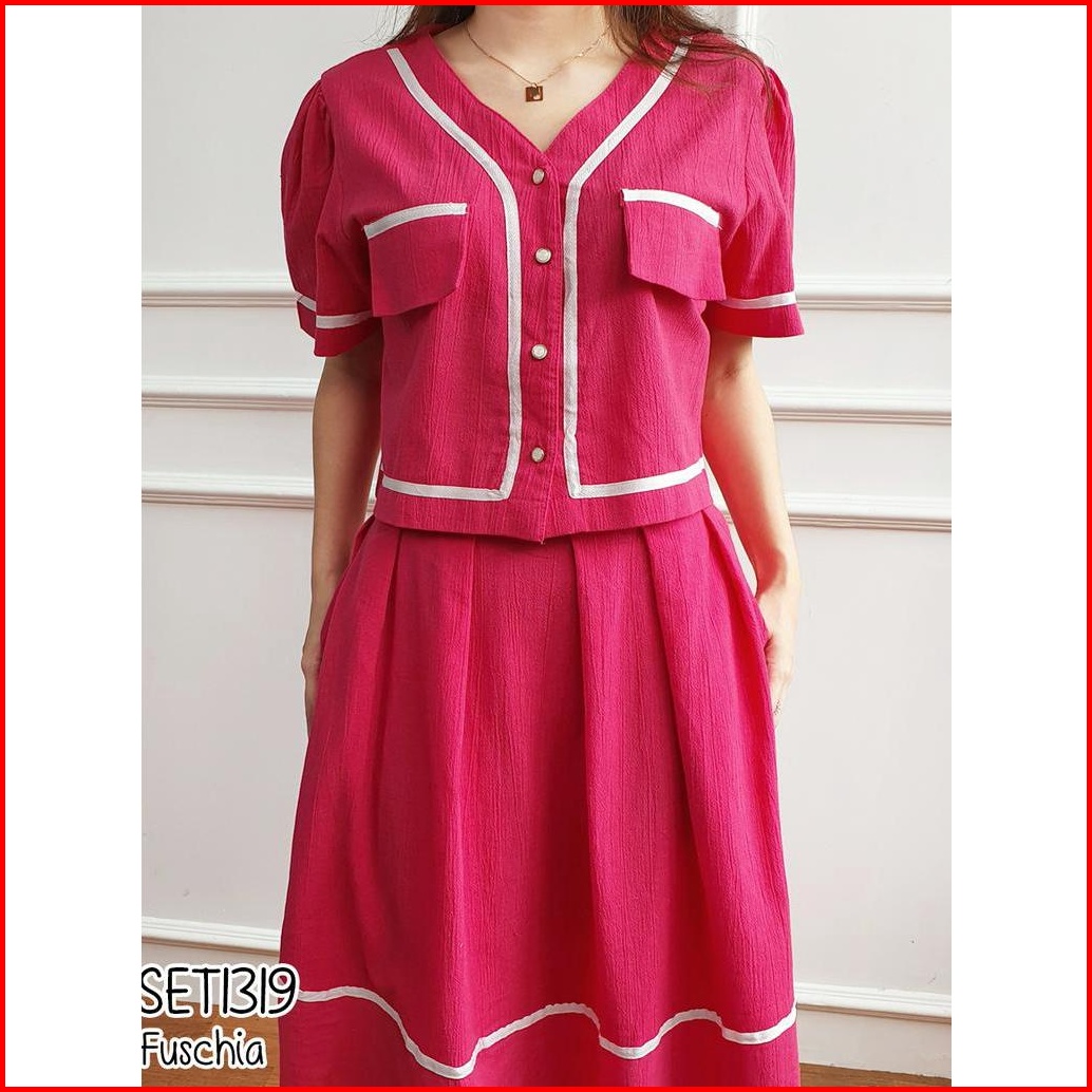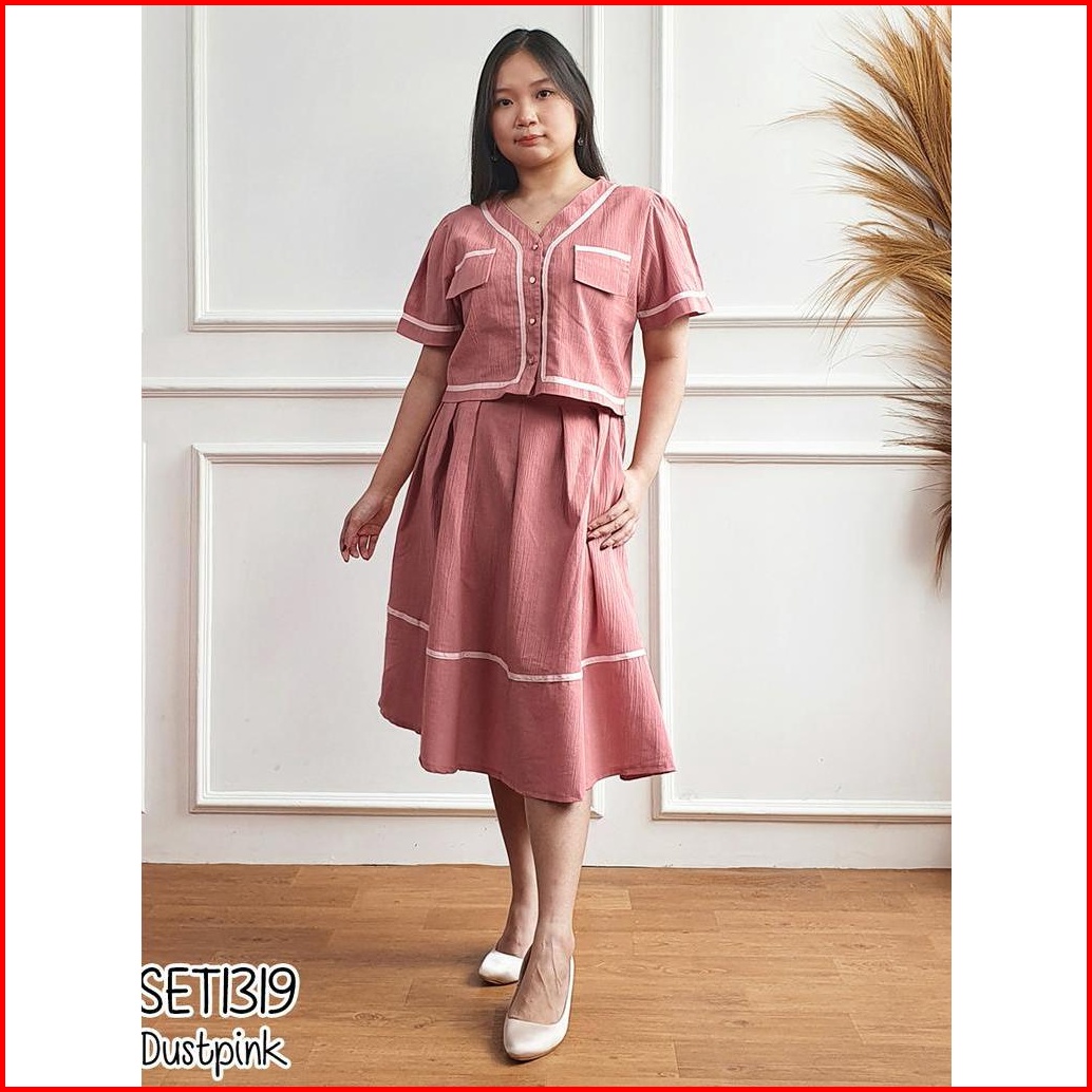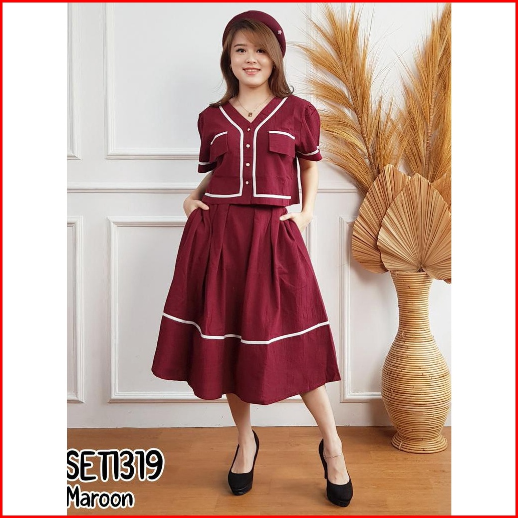 Missol One Set Wanita Atasan Dan Rok Flare Korean Style Polos Linen Set1319 Presenter Tv One