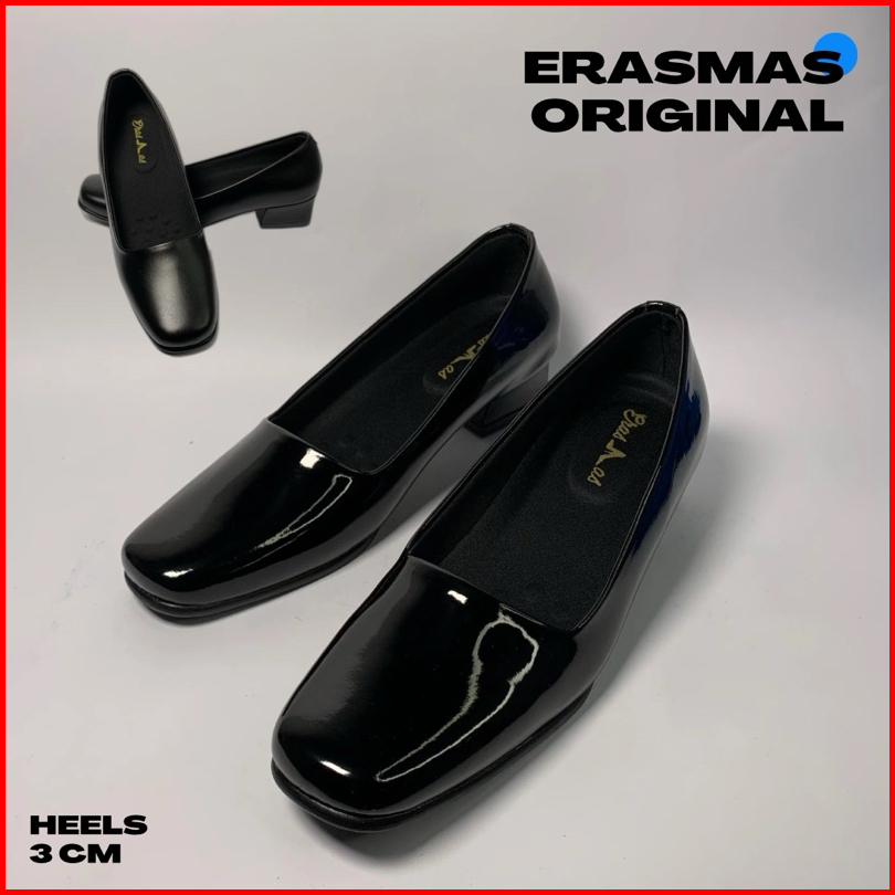 Heels 3 Cm - Ujung Kotak - Outsole Fiber - Erasmas Sepatu Wanita Dinas Kantor Formal Bhayangkari Persit Paskibra Dan Pol