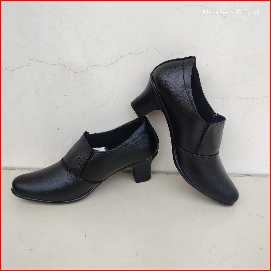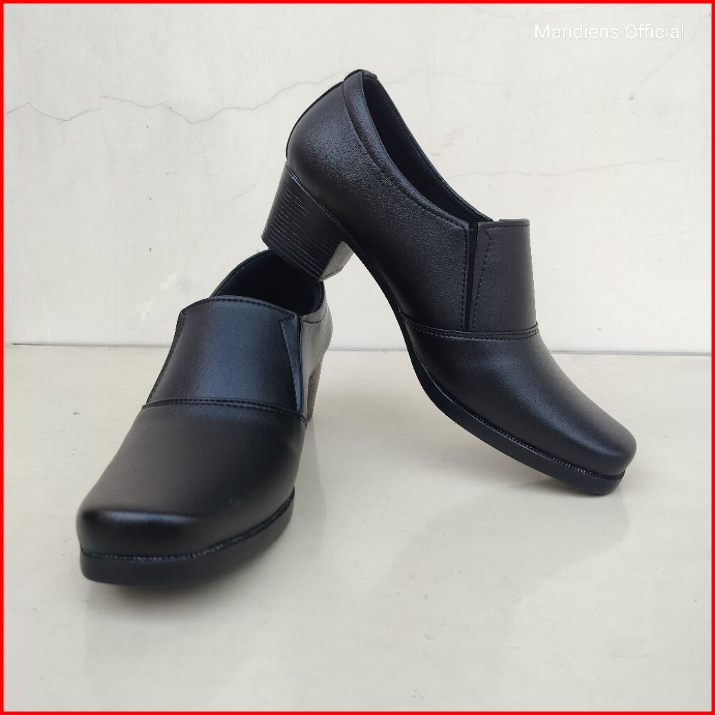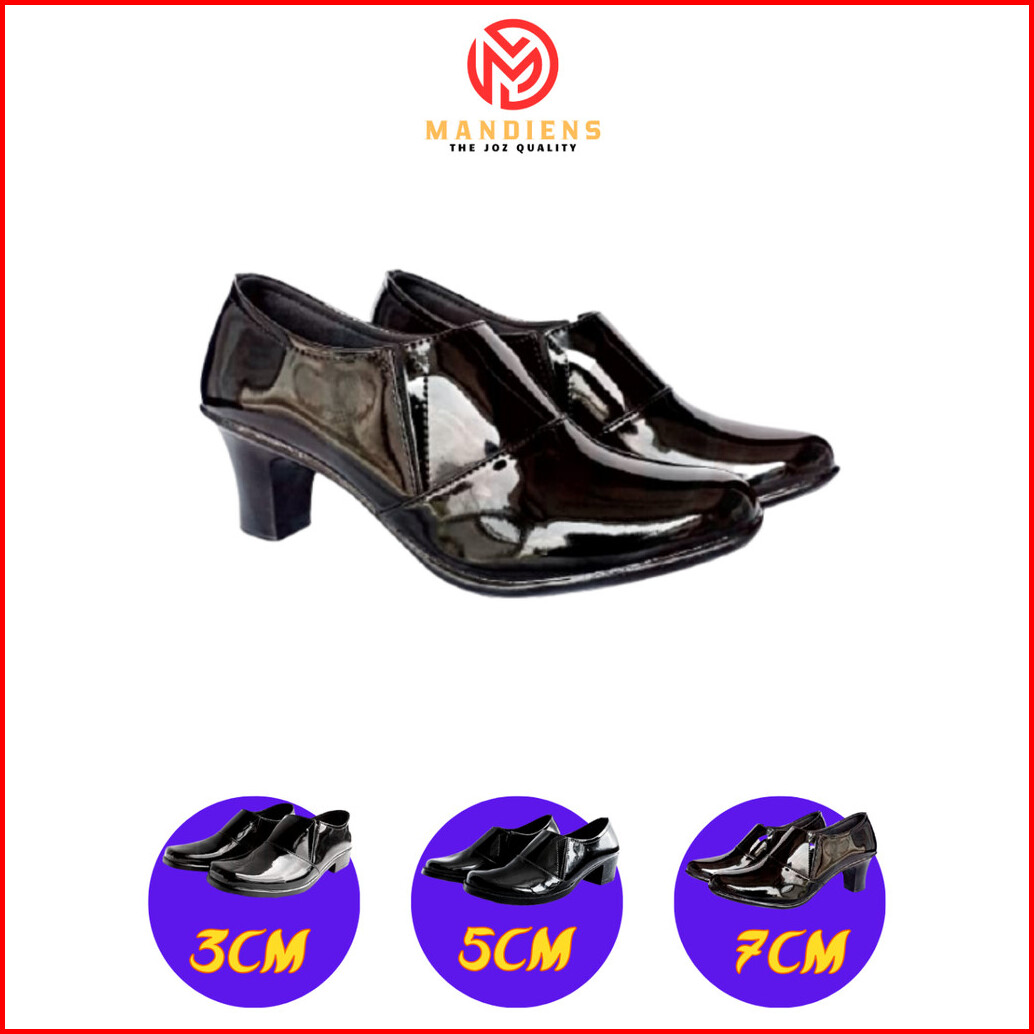 Mandiens Sepatu Heels Bhayangkari Persit Ankle Boots- Sepatu Pdh Polwan Halfboot Kilap Elastis