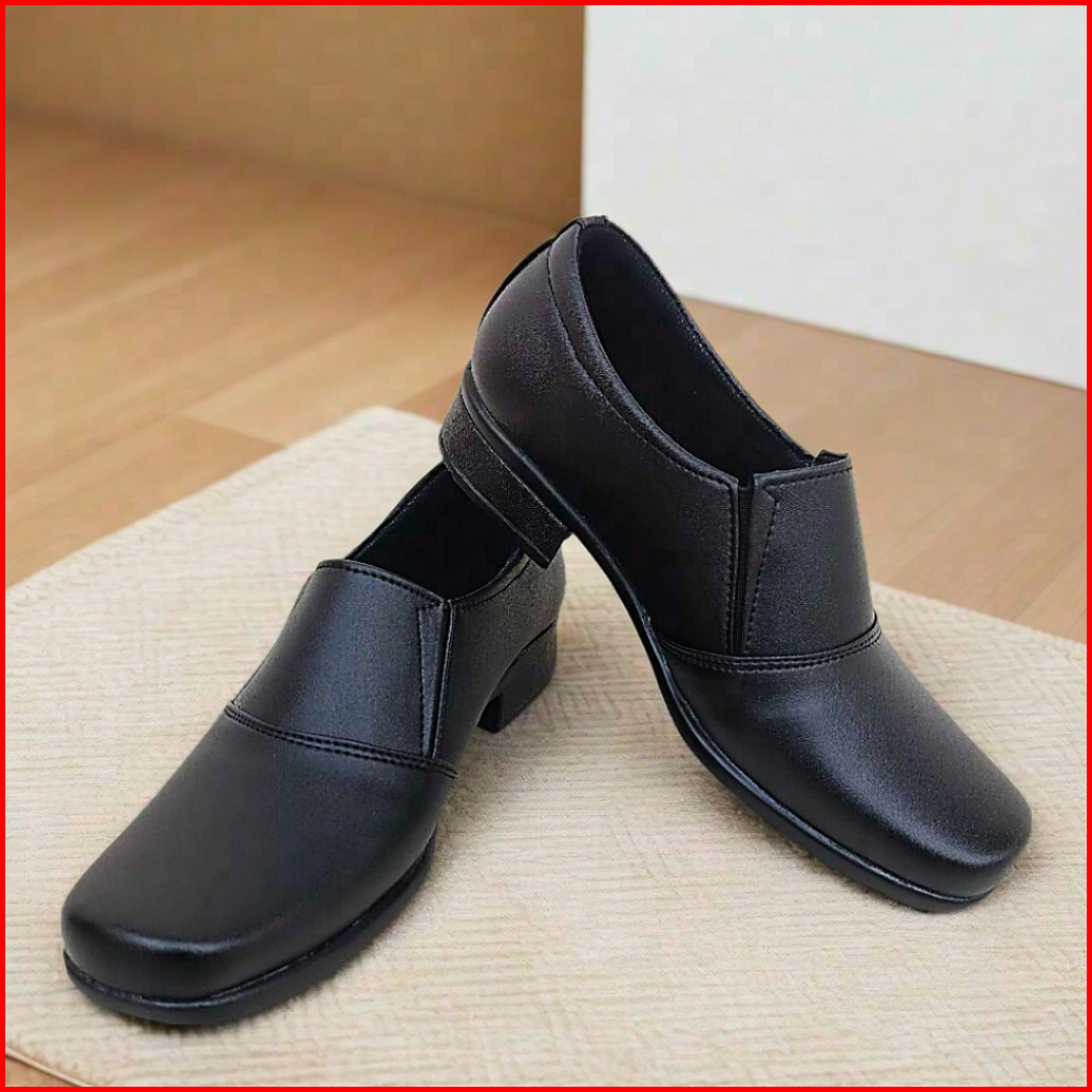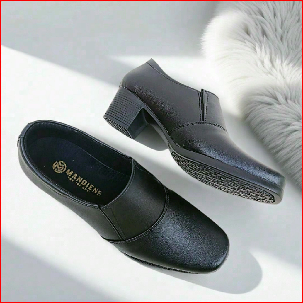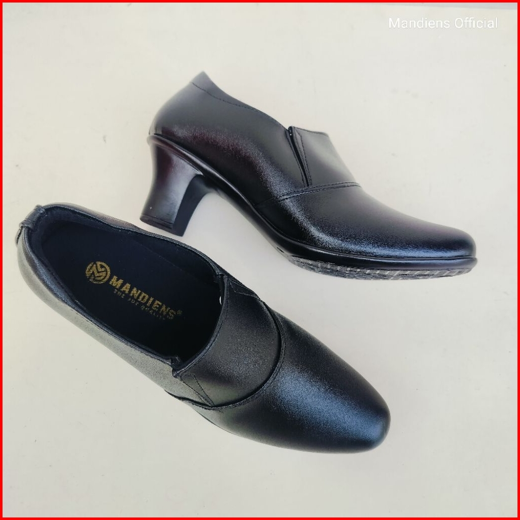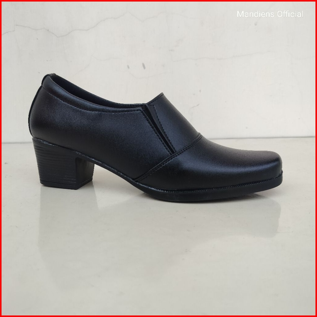 Mandiens Sepatu Heels Bhayangkari Persit Ankle Boots- Sepatu Pdh Polwan Halfboot Kilap Elastis