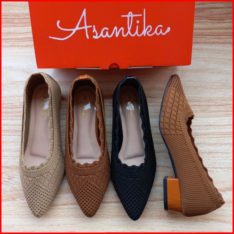 Asantika Sepatu Kantor Pantofel Rajut Hak Pendek 3cm Jumbo Bigsize 41 42 43 44 Elegan Nyaman