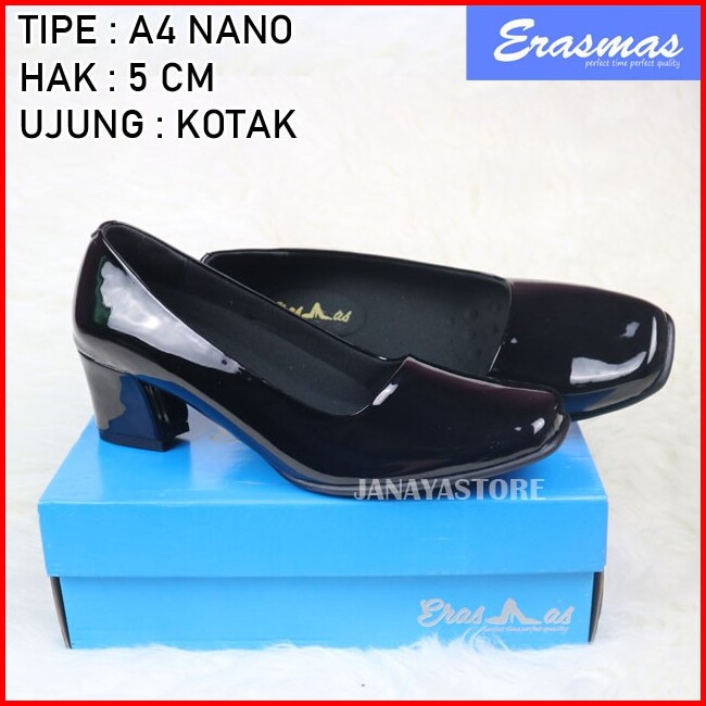 Sepatu Pdh A4 Erasmas Hak 5cm Kotak Persit Bhayangkari Perawat Dishub Satpol Pp