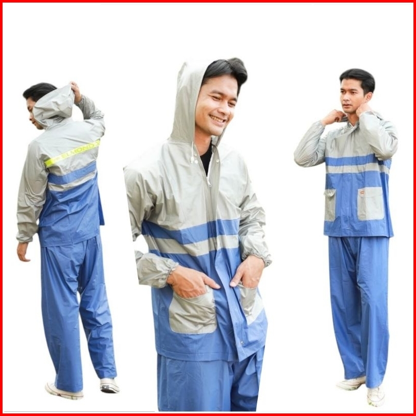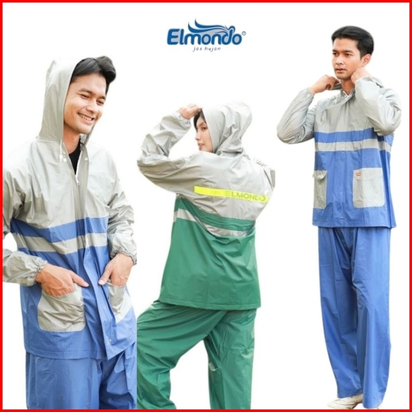 Elmondo 905 Jas Hujan Setelan New Kombinasi A Jaket Celana Dewasa Mantel Ibex Stelan Baju Pria Unisex Murah Biru Hijau A